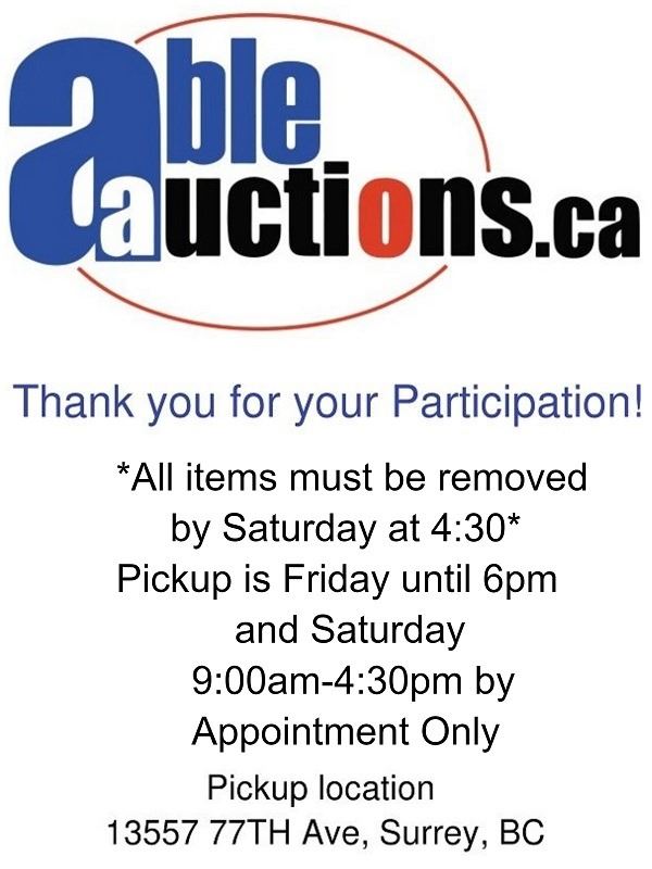 ALL ITEMS MUST BE REMOVED BY SATURDAY 4:30PM BY APPOINTMENT