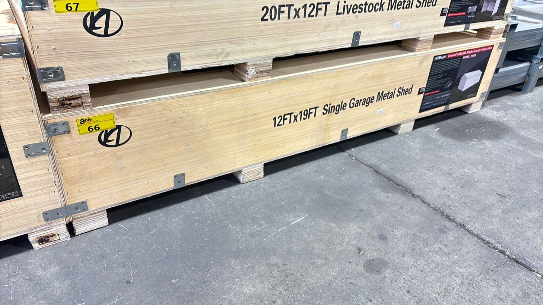 ALLMETAL K1220 UNUSED 12' X 20' SINGLE STEEL METAL OUTDOOR INDUSTRIAL GARAGE / SHED *IN CRATE* DIMENSIONS 141"W X 233"L X 108"H