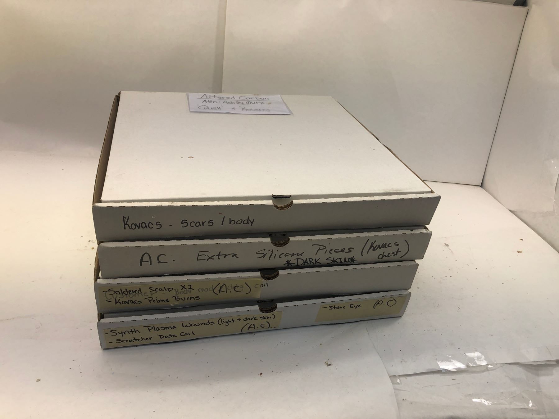 ALTERED CARBON - "Kovacs" Bondo Scars / Body - "Kovacs" Dark skinned chest made of silicone- "Kovacs" Soldered Scalp - Prime Burns - Synth Plasma Wounds (light + Dark Skin)- Scratcher Data Coil