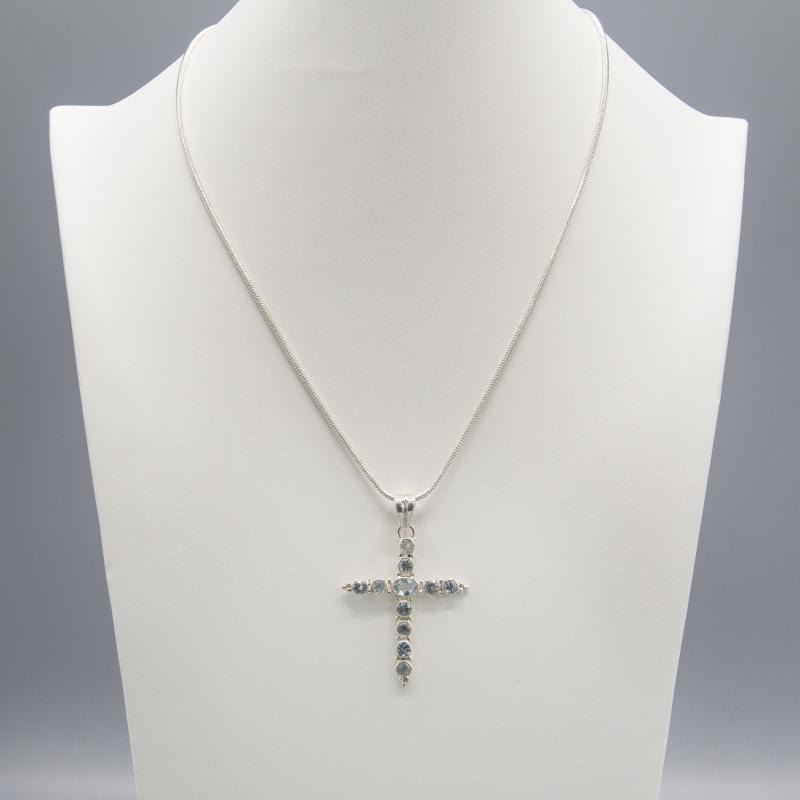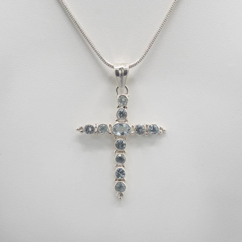 AMAZING 12.50 CT SWISS BLUE TOPAZ CROSS PENDANT MOUNTED IN SOLID.925 STERLING SIVER INCLUDES 20" 2MM CHAIN 14.2 Total Gram Weight.