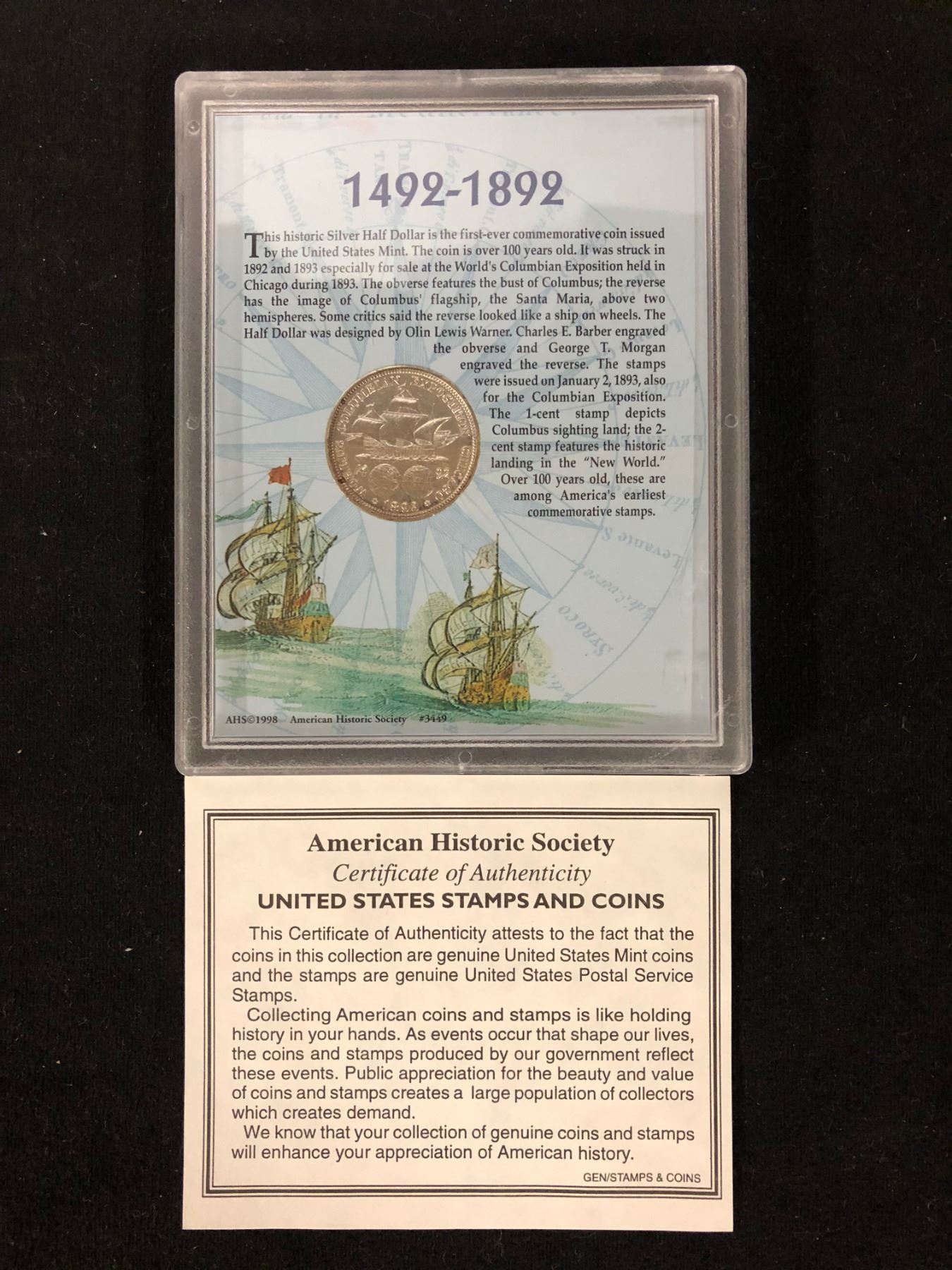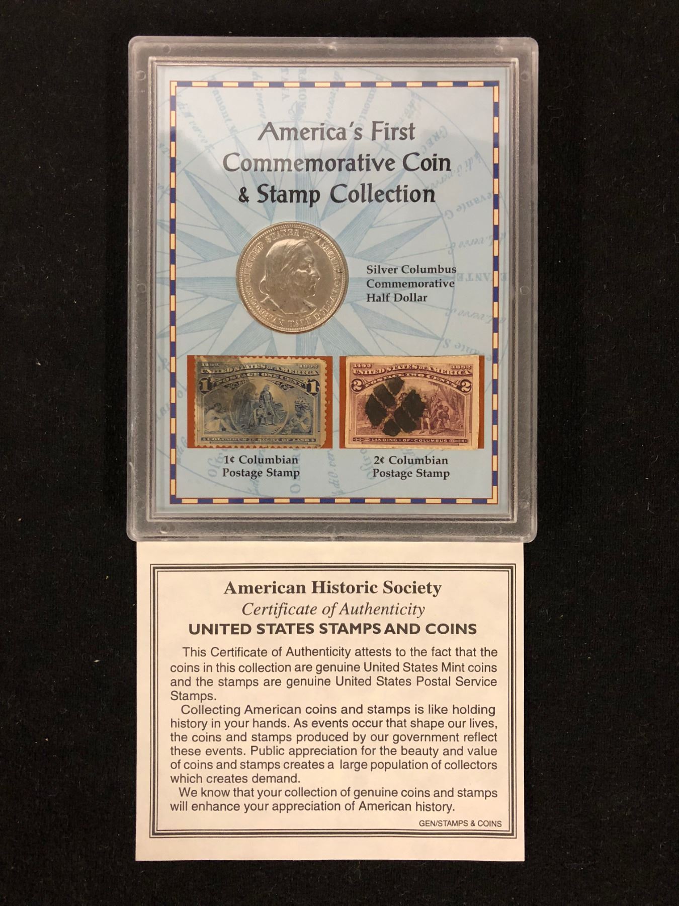 AMERICA'S FIRST COMMEMORATIVE COIN & STAMP COLLECTION W/ COA