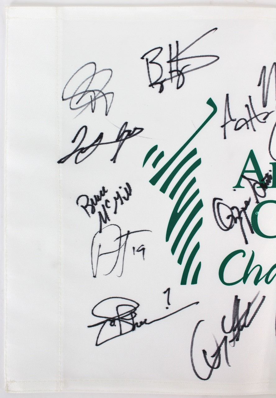 This Autographed American Century Championship Pin Flag has been Personally Signed by Jared Goff, Doug Flutie, Joe Theismann, Herm Edwards, Blake Bortles, Bode Miller, Chris Webber, Johnny Damon, Terrell Davis, Adam Thielen, T.J. Oshie, A.J. Hawk, Larry The Cable Guy, Marcus Allen, Golden Tate, DeMarcus Ware, Patrick Peterson, Steve Young, Ray Romano, Miles Teller, Tim Brown, Joe Pavelski, Mike Modano & Jim McMahon. This item is 100% Authentic to include a Certificate of Authenticity (COA) / hologram by Beckett Authentication Services. The authenticity can be verified on Beckett Authentication Services website. Press Pass Collectibles only offers Authentic Autographs by Jared Goff, Doug Flutie, Joe Theismann, Herm Edwards, Blake Bortles, Bode Miller, Chris Webber, Johnny Damon, Terrell Davis, Adam Thielen, T.J. Oshie, A.J. Hawk, Larry The Cable Guy, Marcus Allen, Golden Tate, DeMarcus Ware, Patrick Peterson, Steve Young, Ray Romano, Miles Teller, Tim Brown, Joe Pavelski, Mike Modano & Jim McMahon