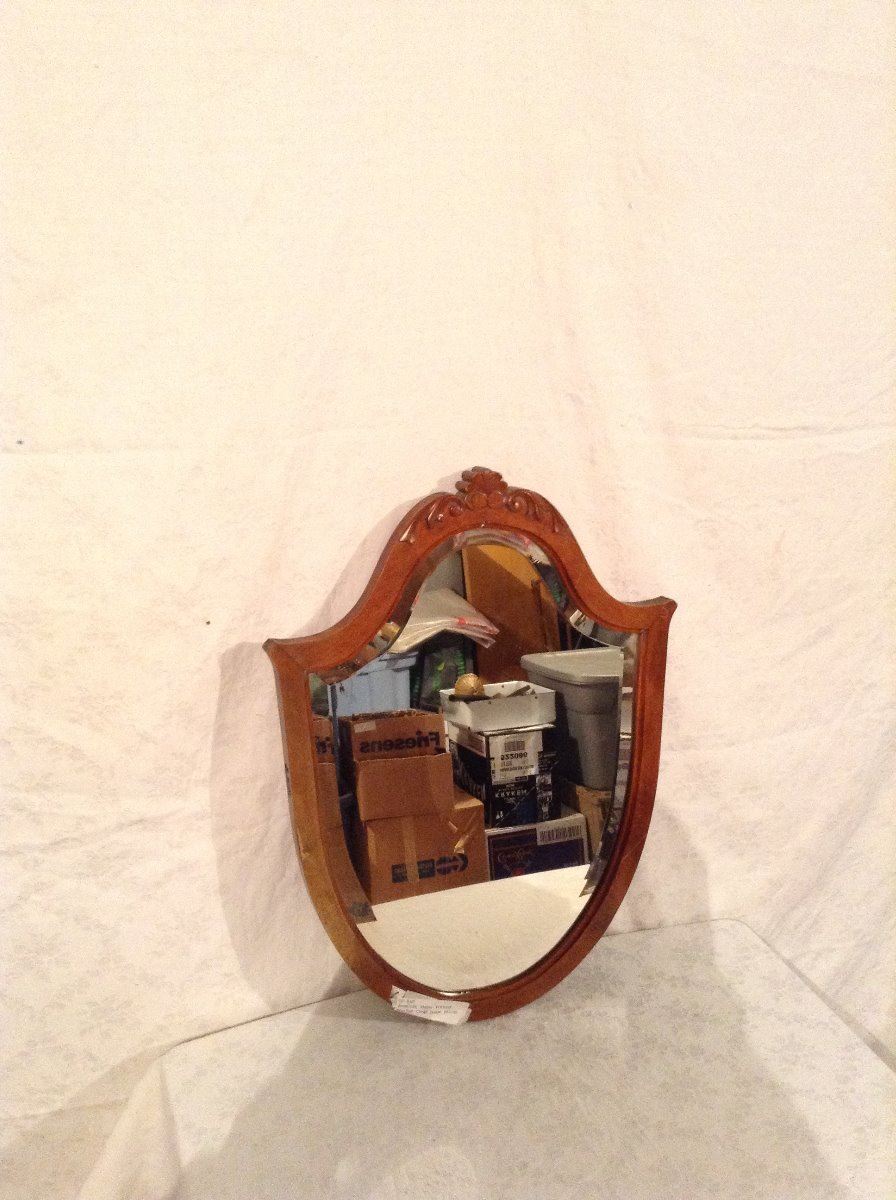 AMERICAN MAPLE FRAMED BEVELLED SHIELD SHAPE MIRROR