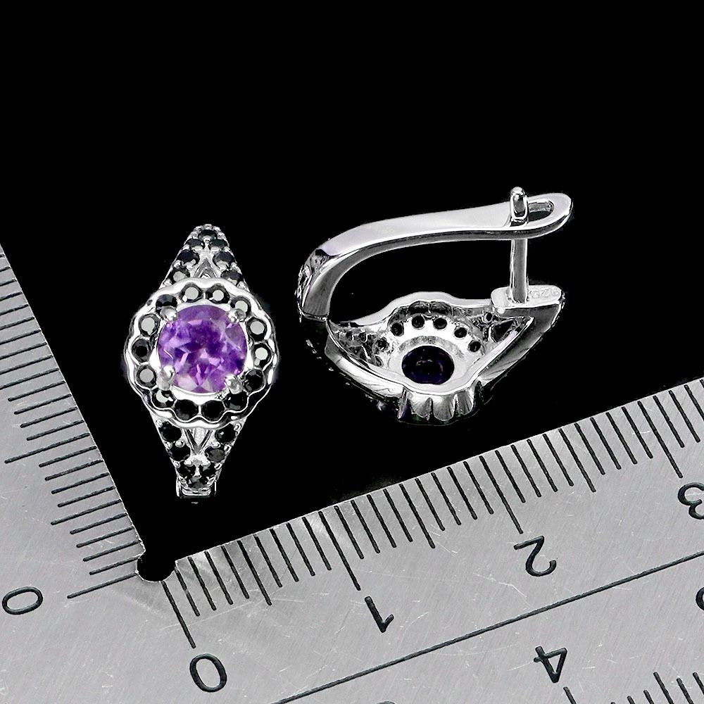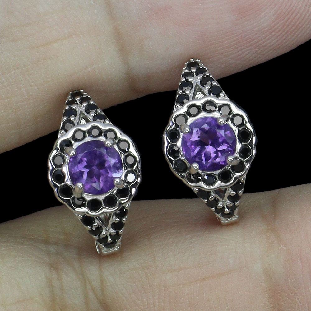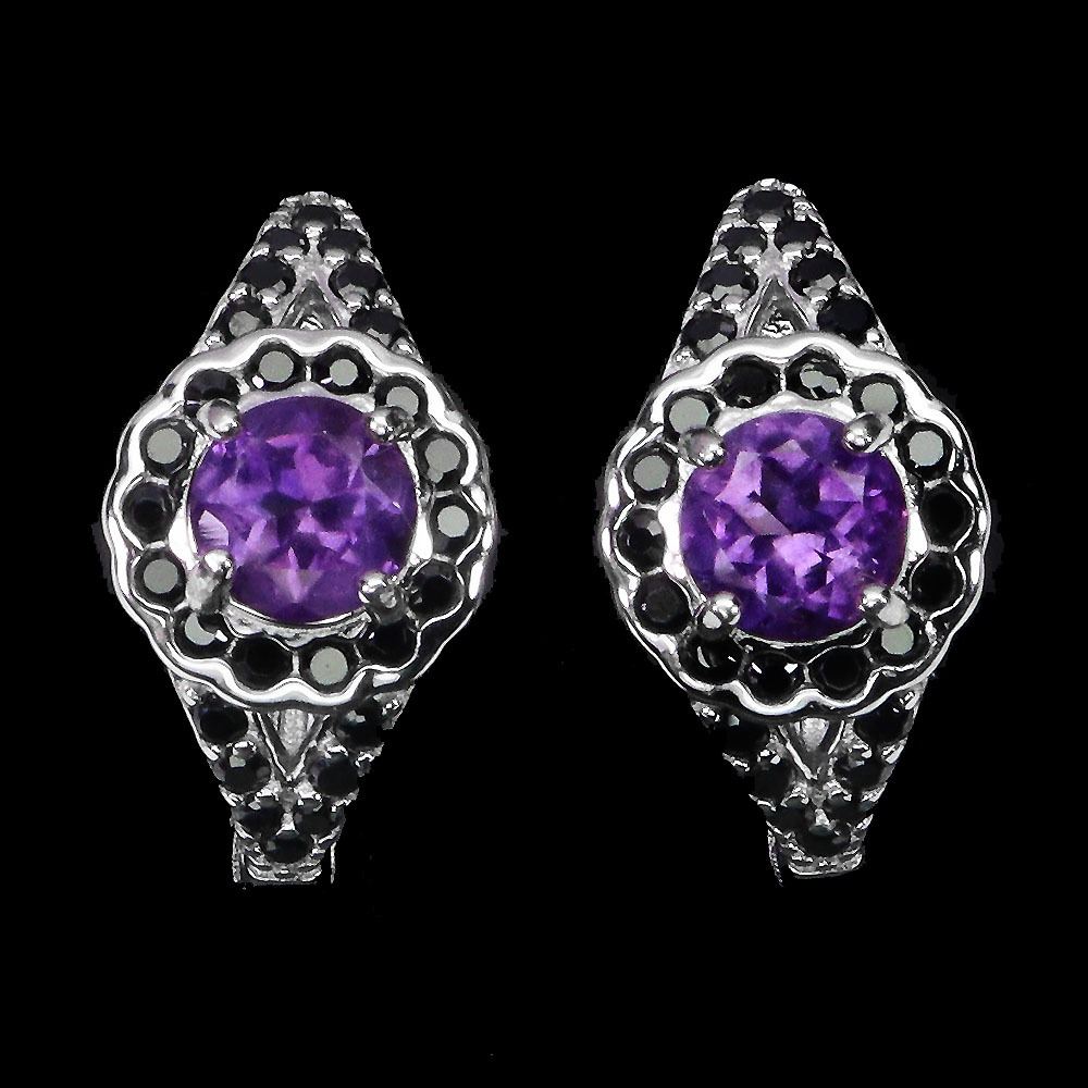 AMETHSYT AND BLACK SPINEL EARRINGS IN 14K WHITE PLATED GOLD OVER 925 STERLING SILVER - APPRAISED REPLACEMENT VALUE $ 720