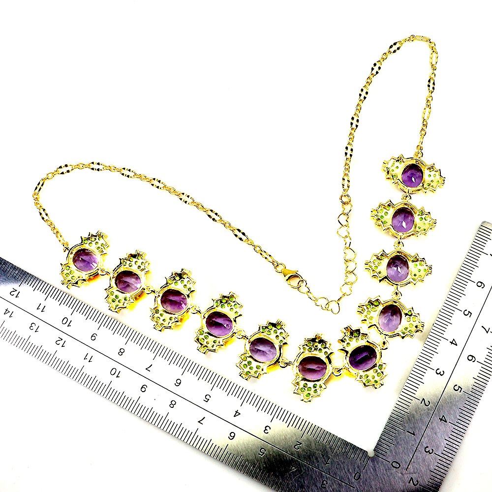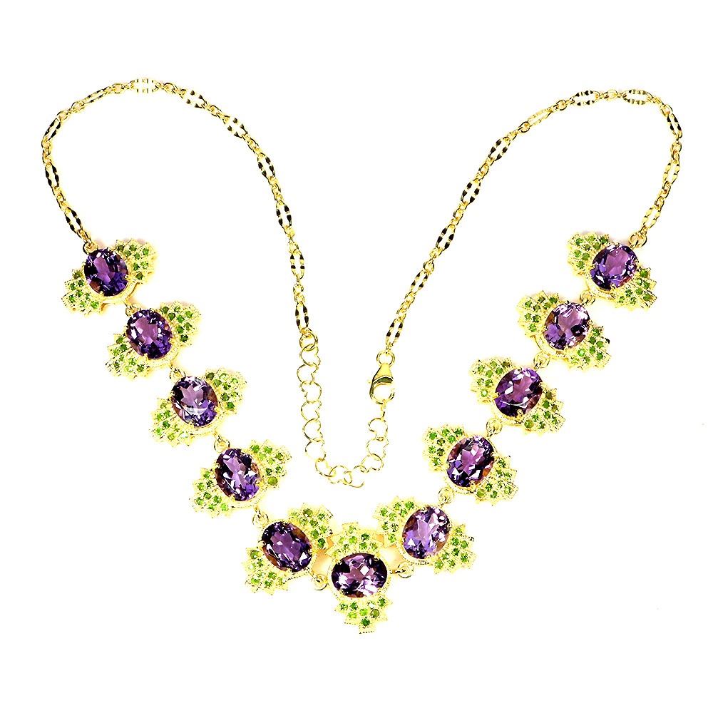 AMETHYST AND CHROME DIOPSIDE NECKLACE IN 14K YELLOW PLATED GOLD OVER 925 STERLING SILVER - 18 INCHES LONG - APPRAISED REPLACEMENT VALUE