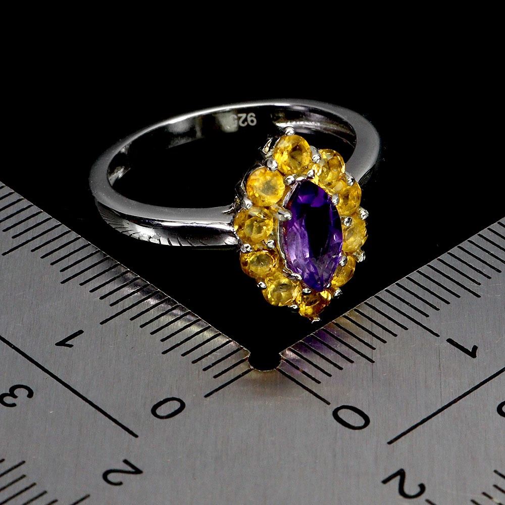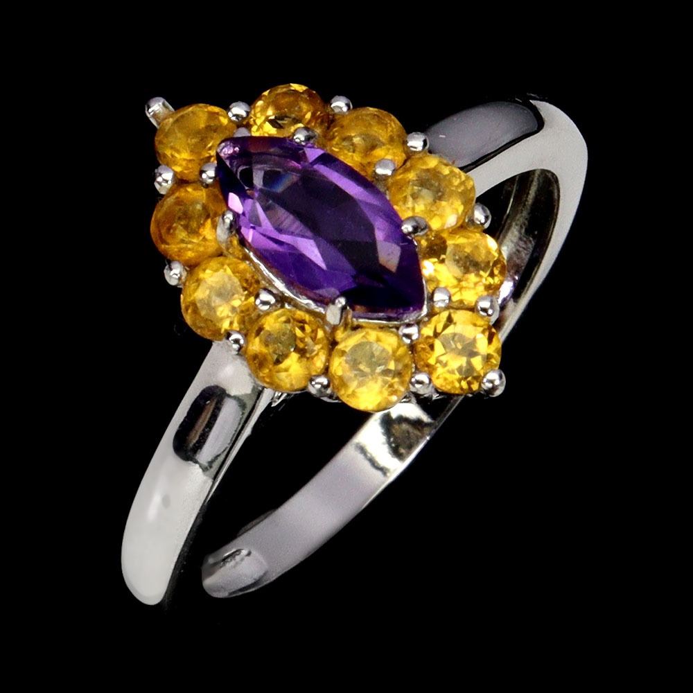 AMETHYST AND CITRINE RING IN 14K WHITE PLATED GOLD OVER 925 STERLING SILVER - SIZE 8 - APPRAISED REPLACEMENT VALUE