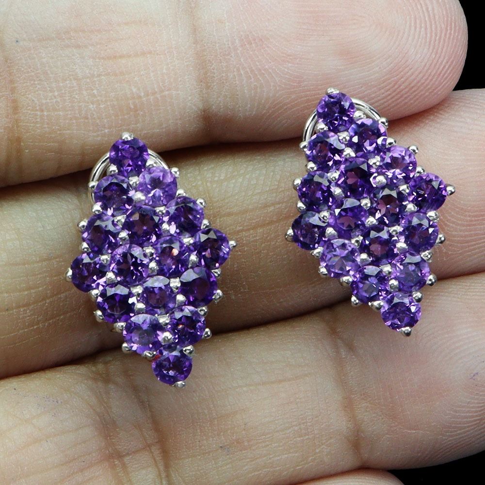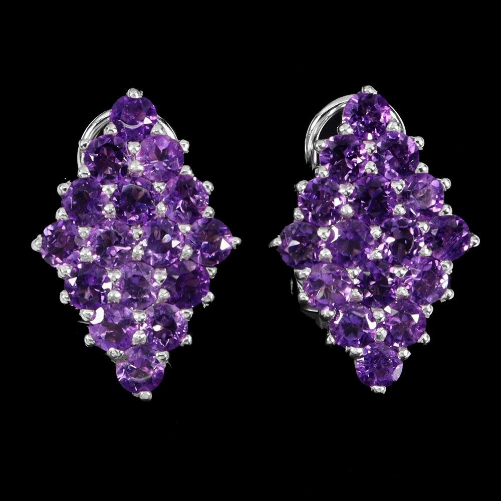 AMETHYST EARRINGS IN 14K WHITE PLATED GOLD OVER 925 STERLING SILVER - APPRAISED REPLACEMENT VALUE