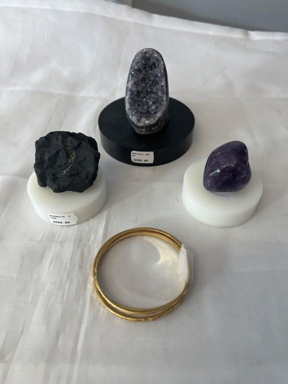 AMETHYST GEODE, AMETHYST TUMBLED STONE, SHUNGHITE STONE AND BANGLES