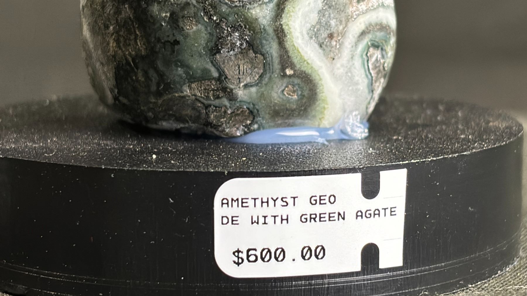 AMETHYST GEODE WITH GREEN AGATE RETAILS $600