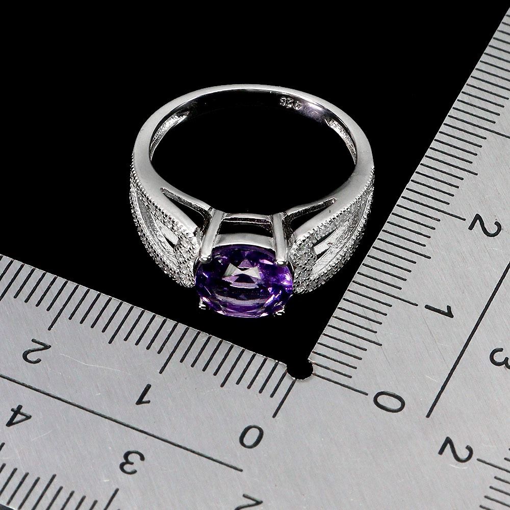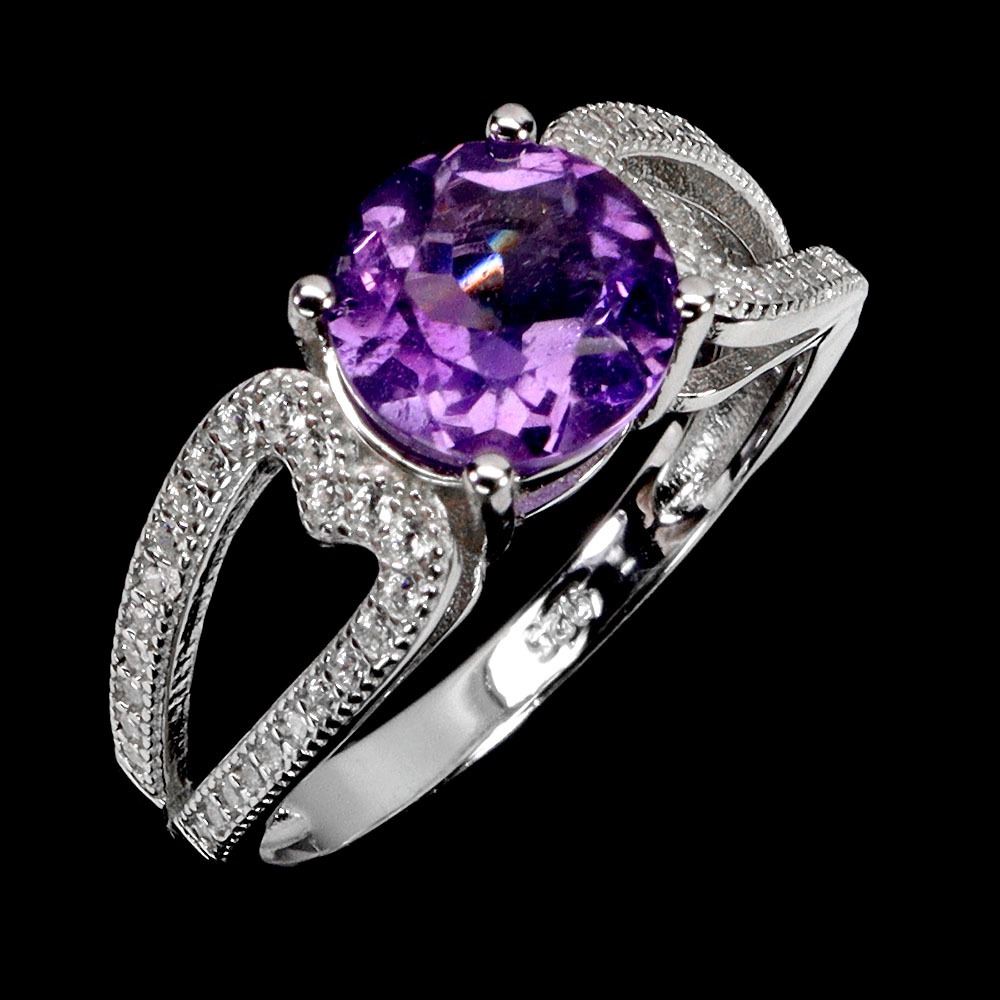 AMETHYST RING IN 14K WHITE PLATED GOLD OVER 925 STERLING SILVER - SIZE 7 - APPRAISED REPLACEMENT VALUE