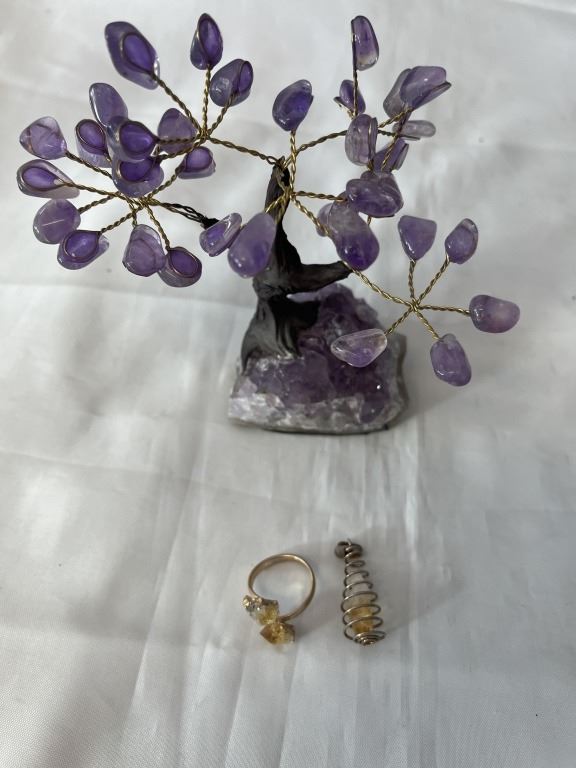 AMETHYST TREE, CITRINE PENDANT AND CITRINE RING