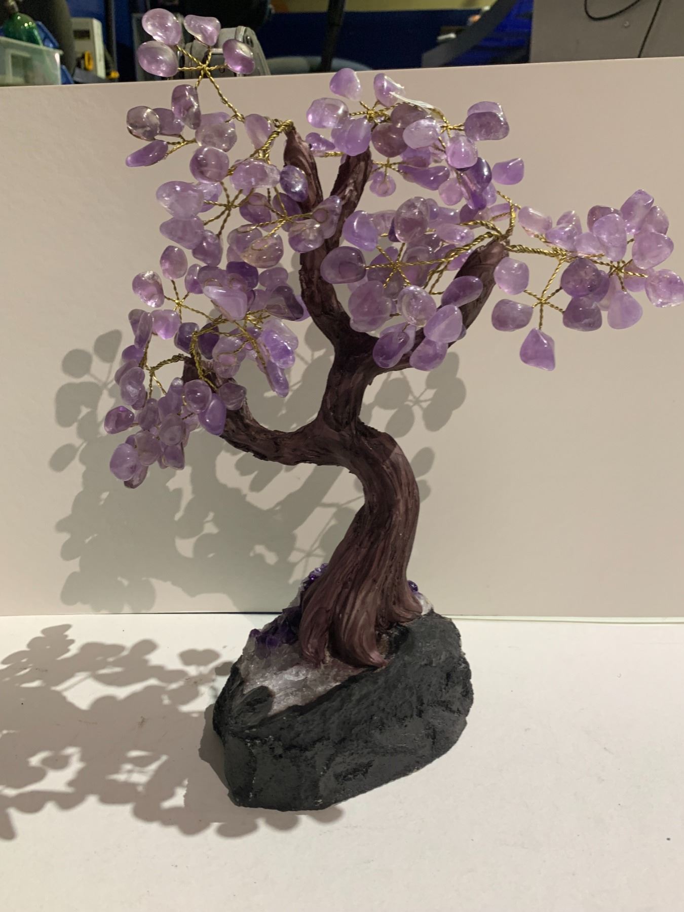 AMETHYST TREE ON AMETHYST BASE APPROX 14" RETAIL $2,400