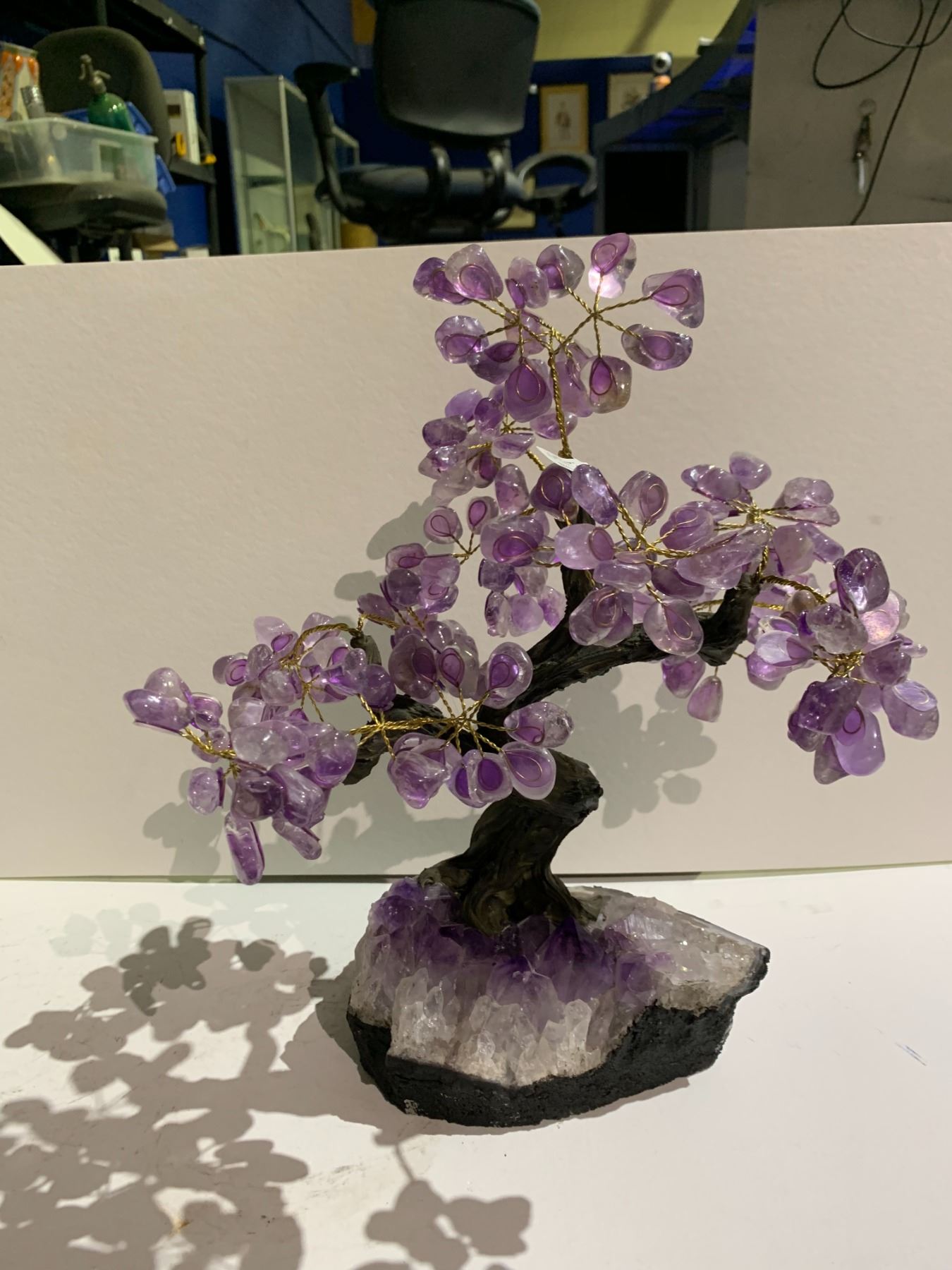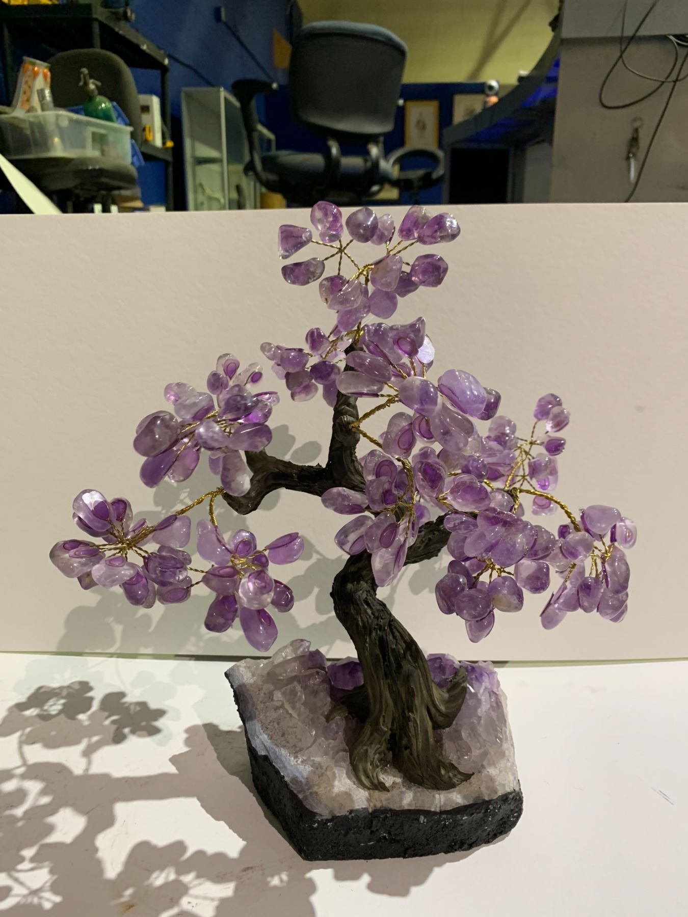 AMETHYST TREE ON AMETHYST BASE APPROX 14" RETAIL $2,400