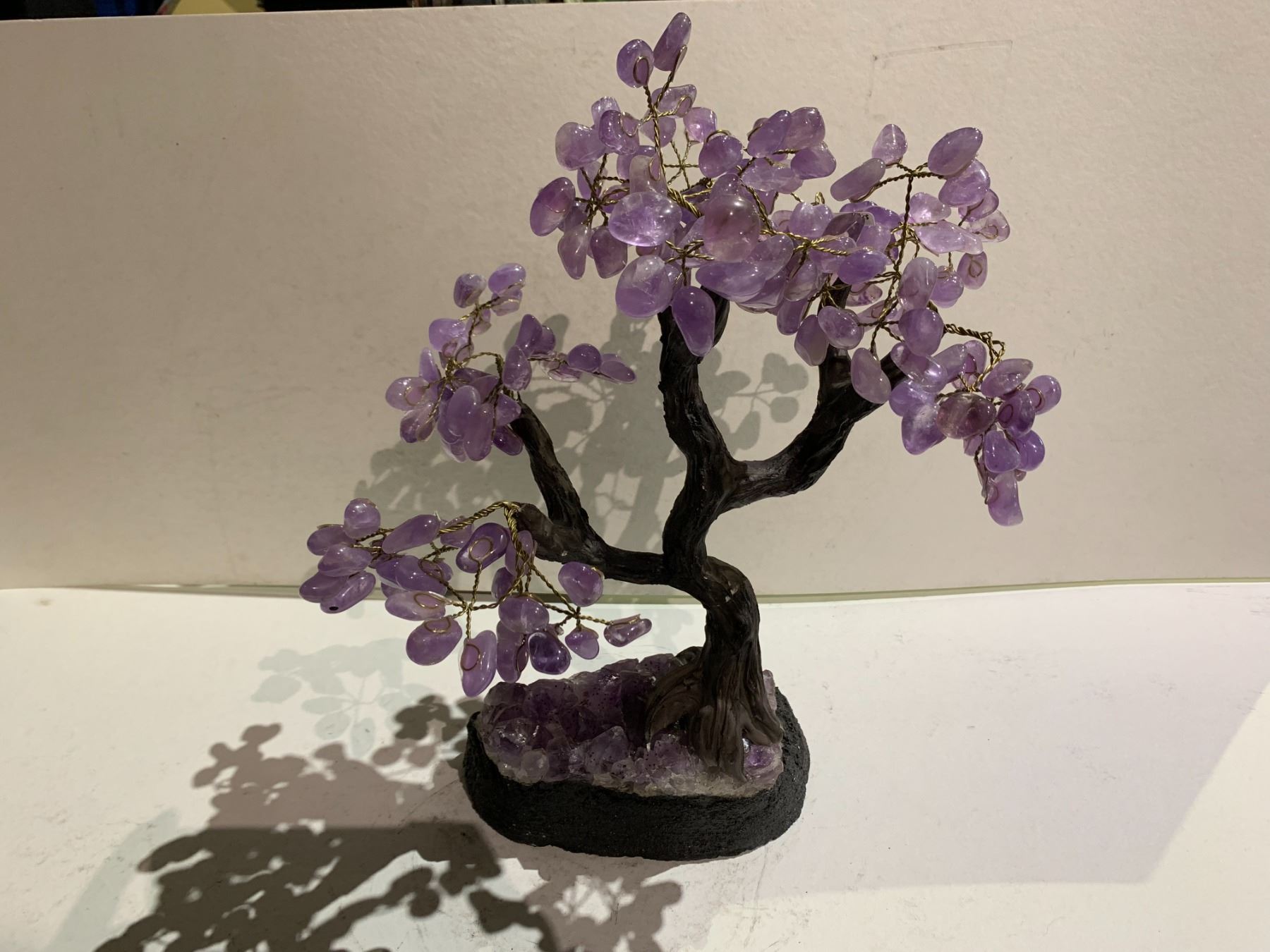AMETHYST TREE ON AMETHYST BASE APPROX 14" RETAIL $2,400