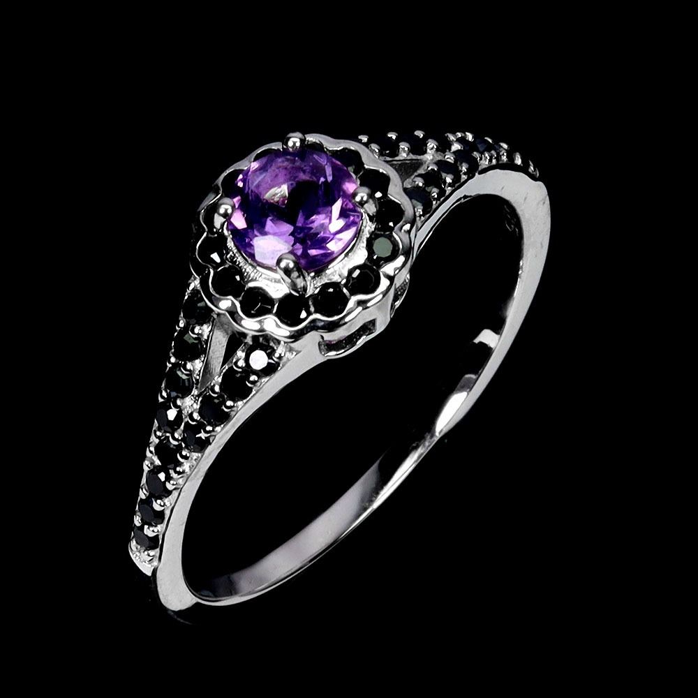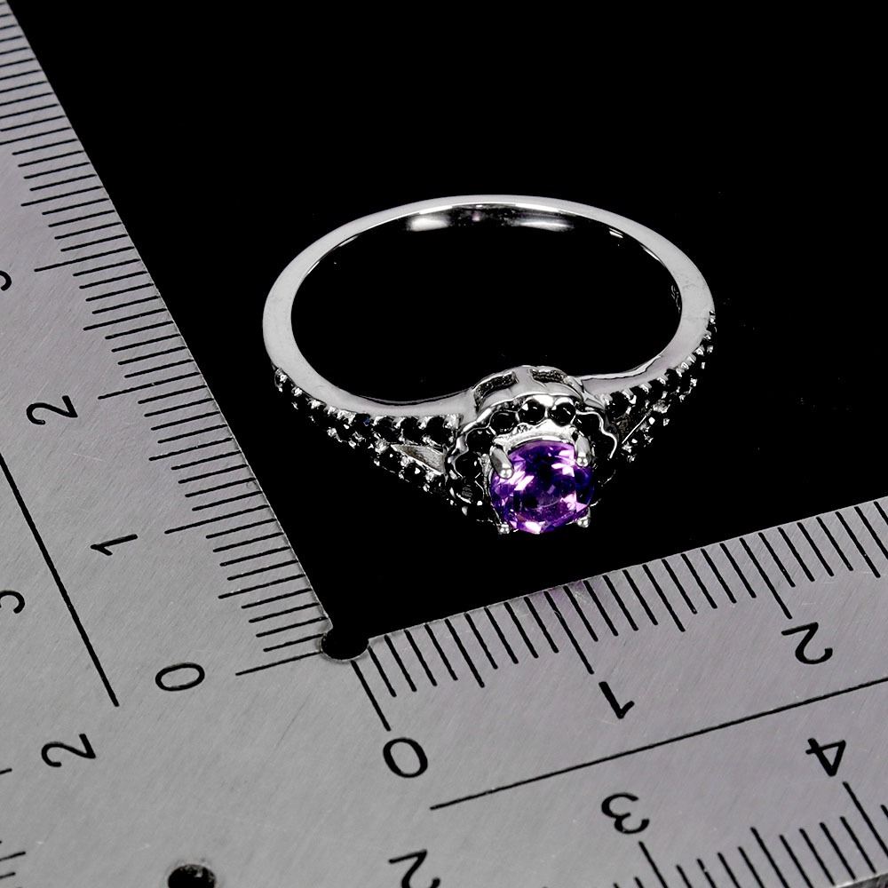 AMETHYSY AND BLACK SPINEL RING IN 14K WHITE PLATED GOLD OVER 925 STERLING SILVER - SIZE 9 - APPRAISED REPLACEMENT VALUE