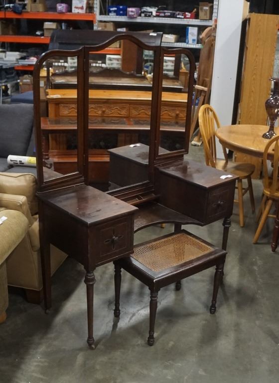 ANTIQUE 2 DRAWER VANITY WITH STOOL