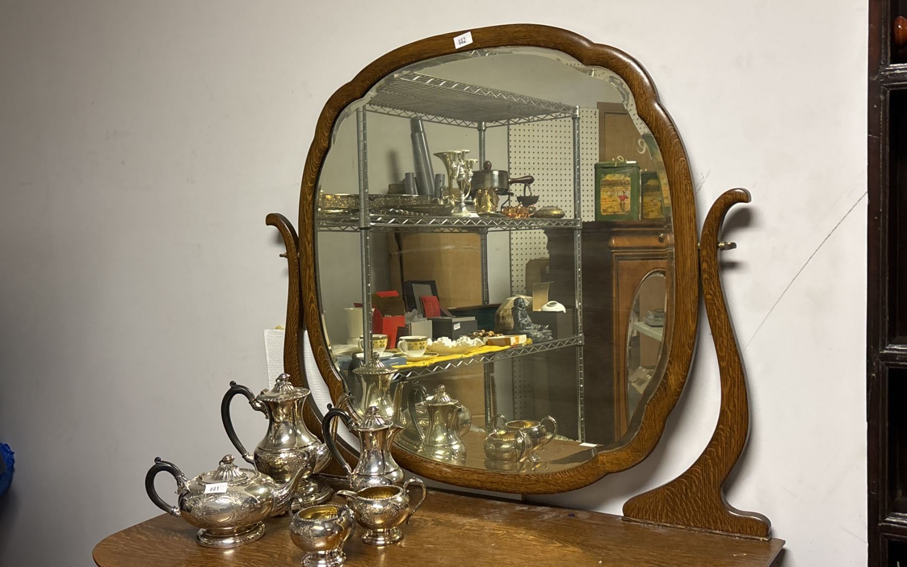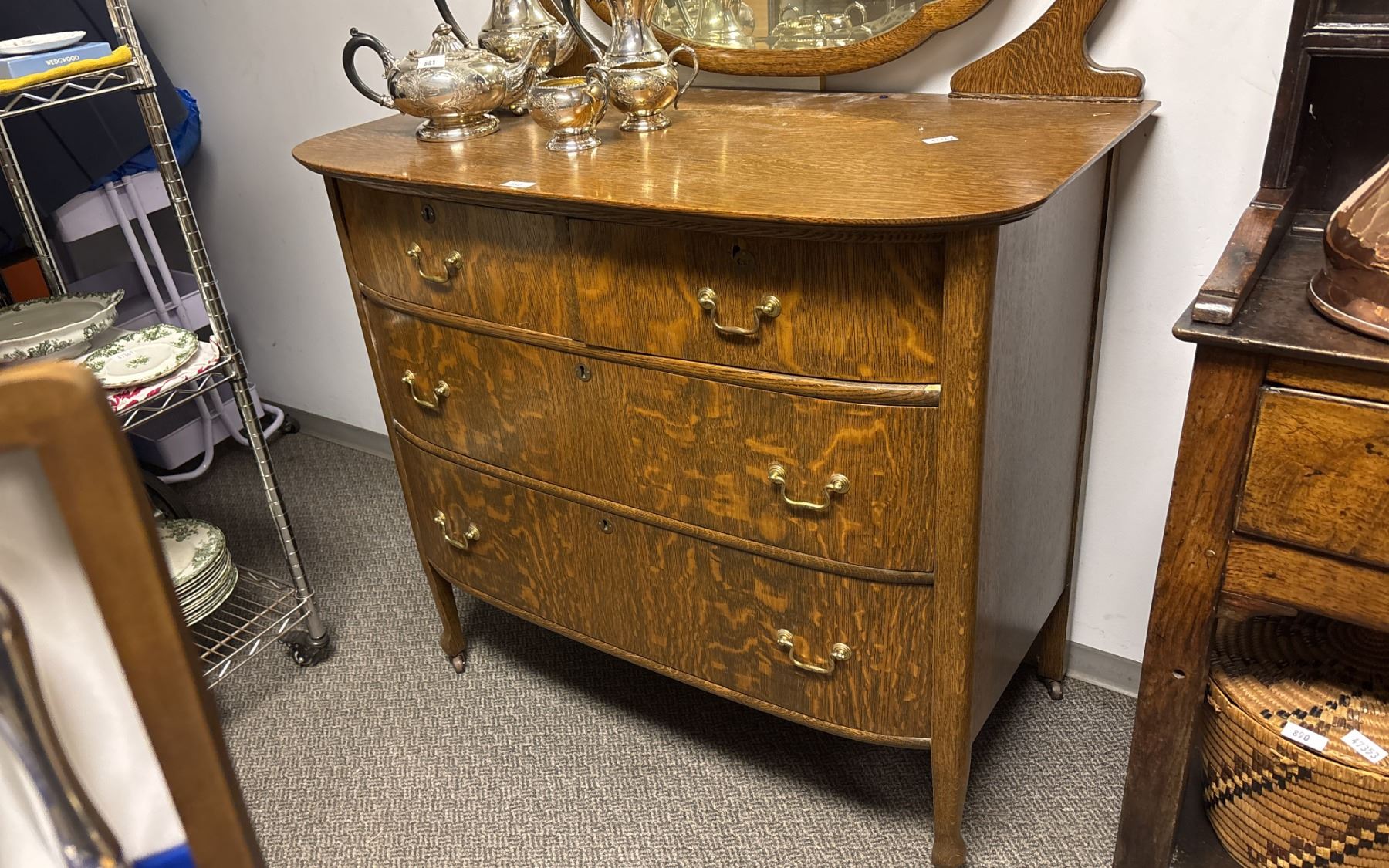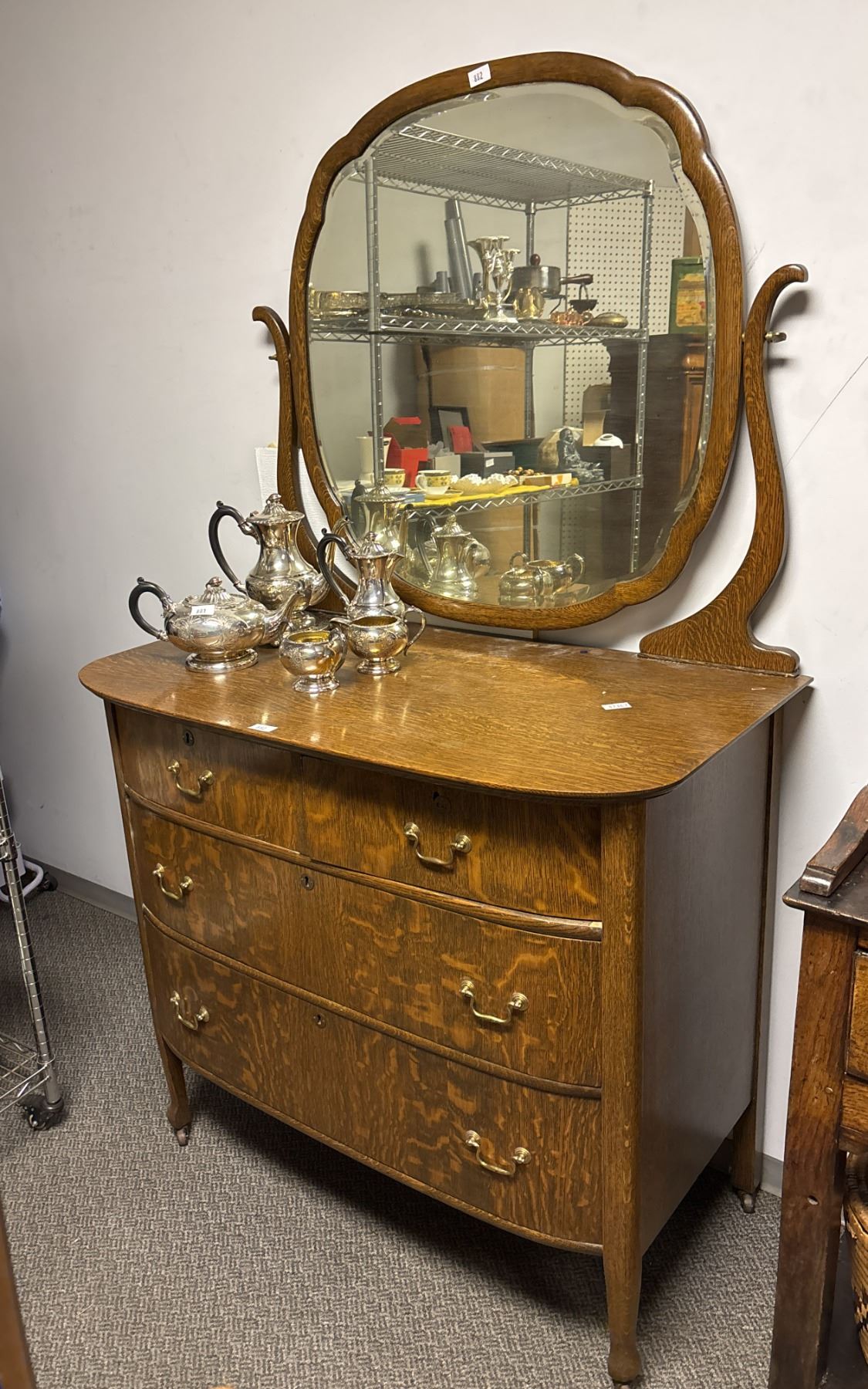 ANTIQUE 4-DRAWER VANITY 41" X 22" X 70" (CONTENTS NOT INCLUDED)