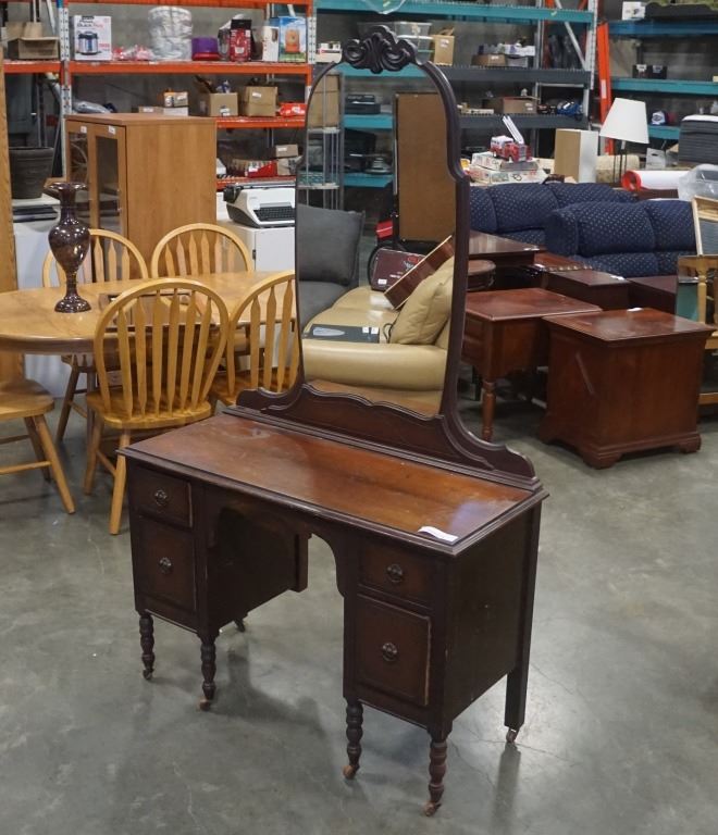 ANTIQUE 4 DRAWER VANITY WITH MIRROR