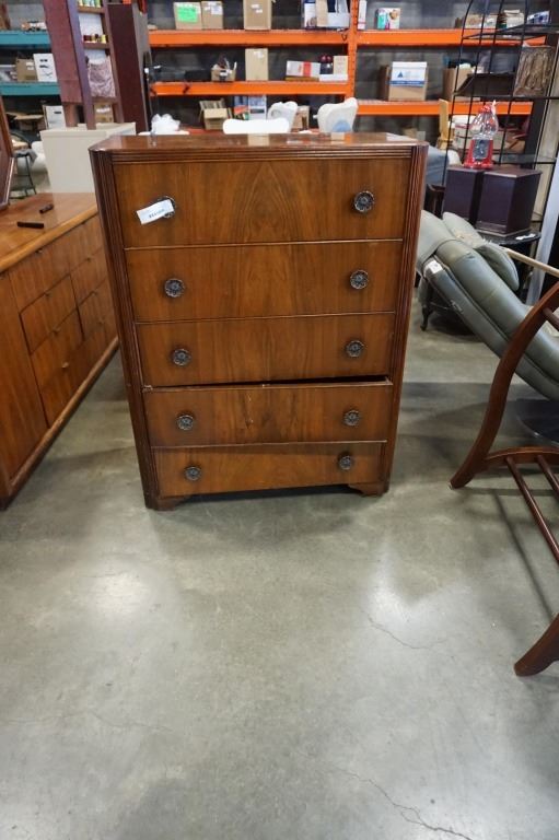 ANTIQUE 5 DRAWER WALNUT CHEST OF DRAWERS