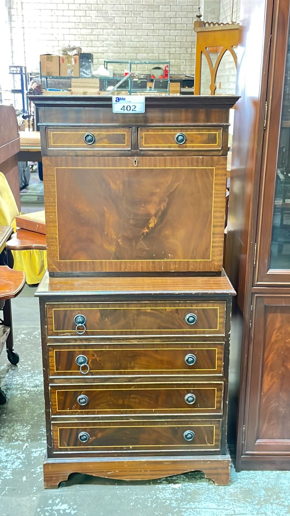 ANTIQUE 6 DRAWER DRESSER WITH FLIP OPEN STORAGE - APPROX. 26"W X 16"D X 55"H