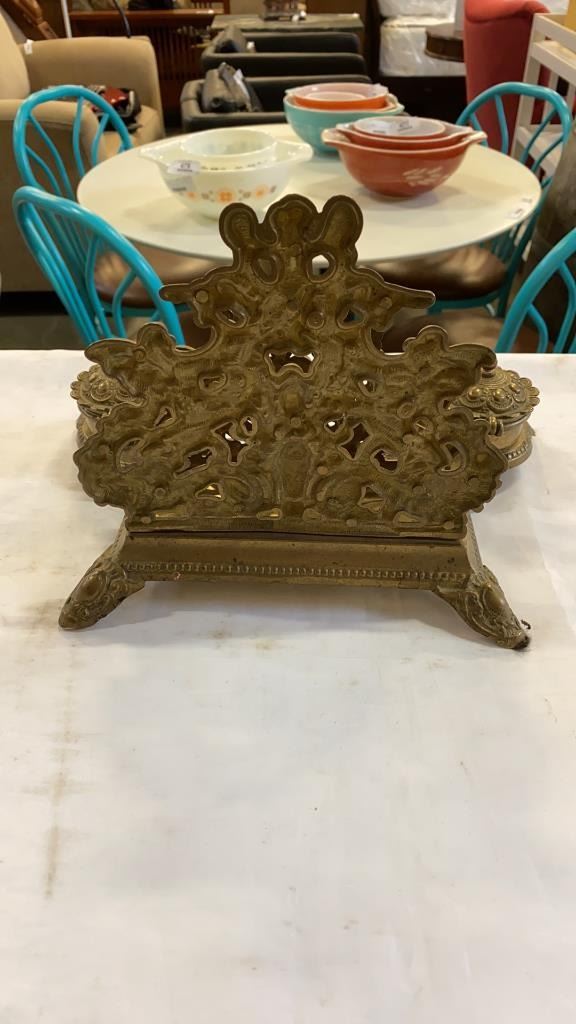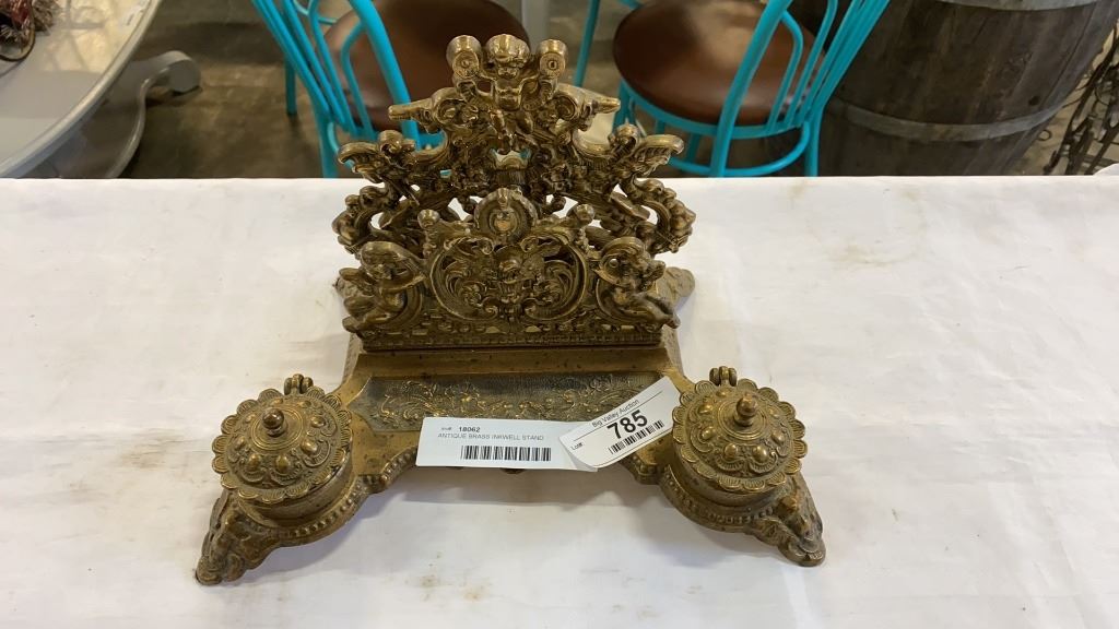ANTIQUE BRASS INKWELL STAND