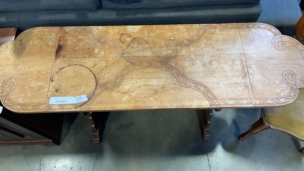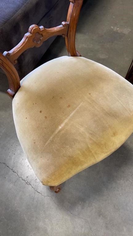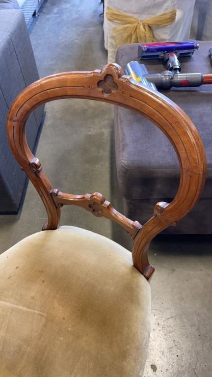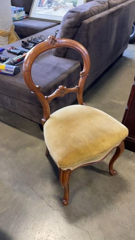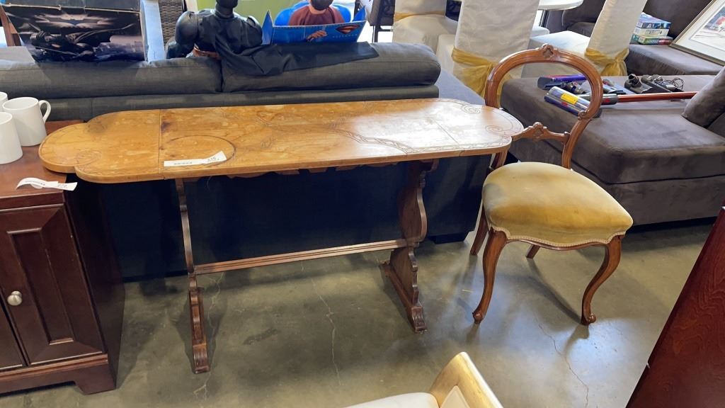 ANTIQUE CARVED DROPLEAF SIDE TABLE AND BALOON BACK CHAIR