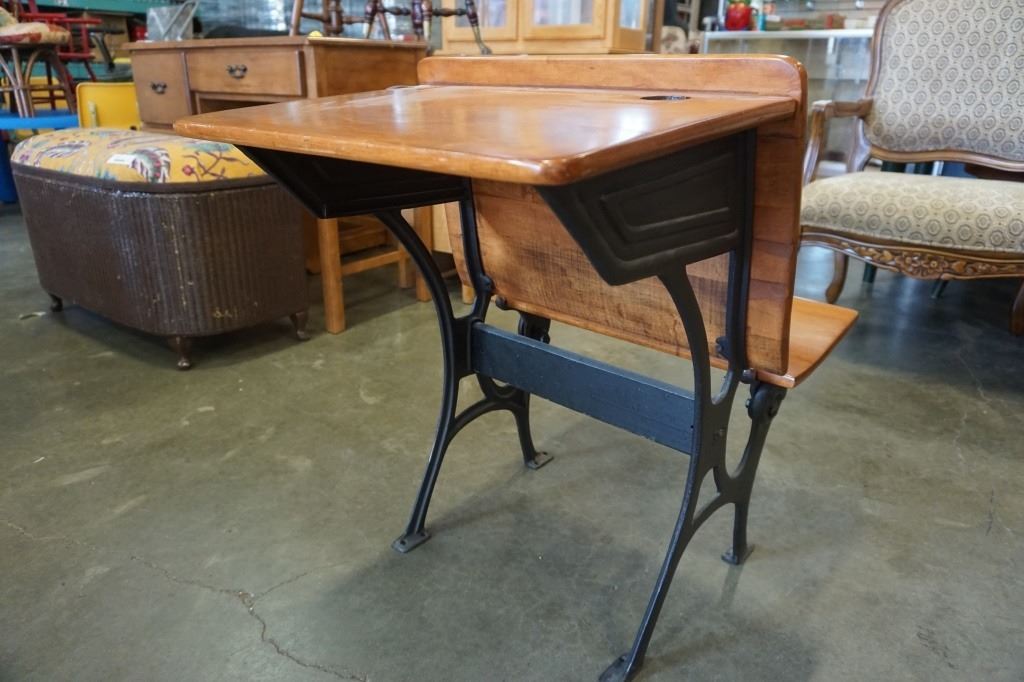 ANTIQUE CAST IRON AND WOOD SCHOOL DESK