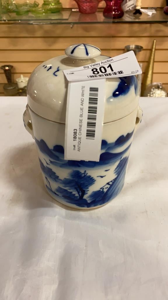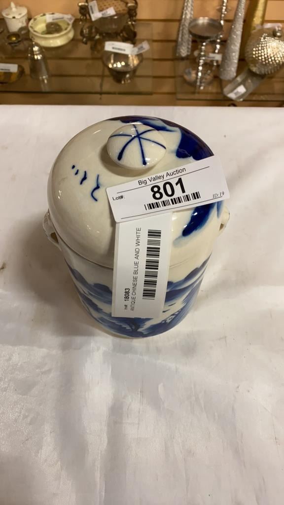 ANTIQUE CHINESE BLUE AND WHITE LIDDED JAR