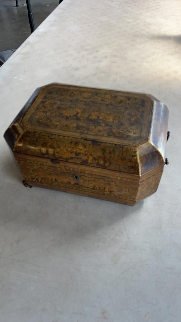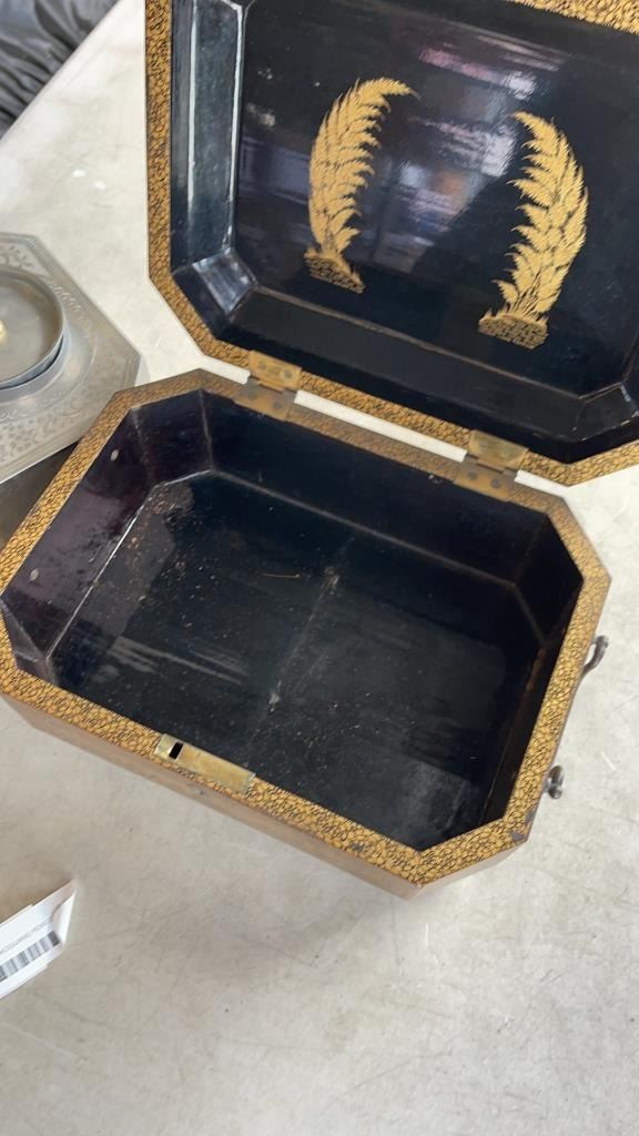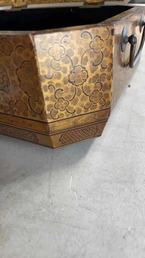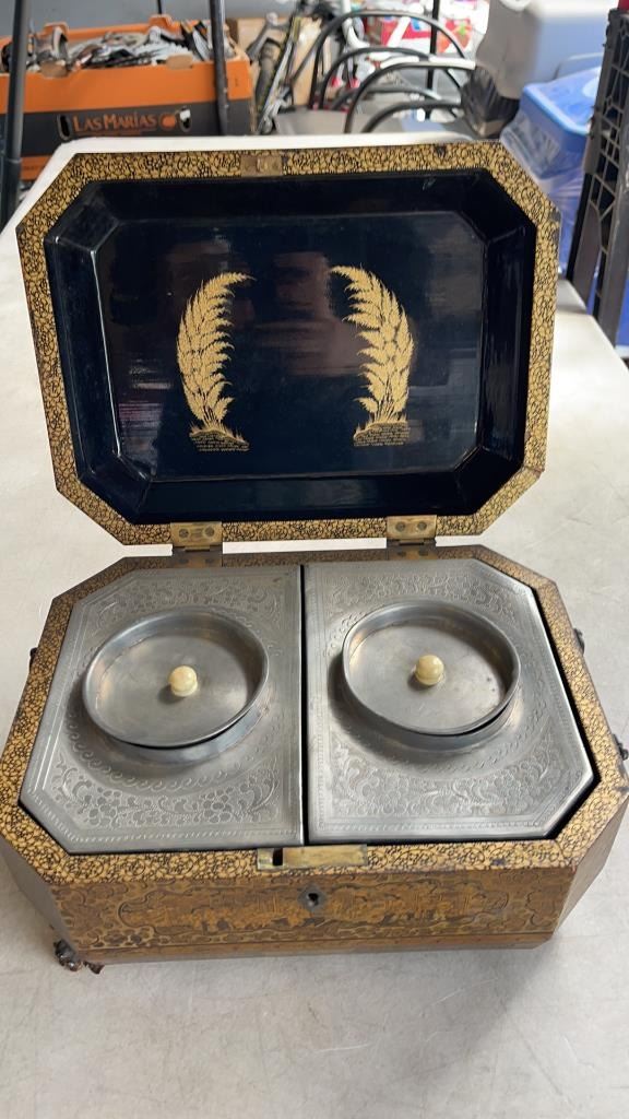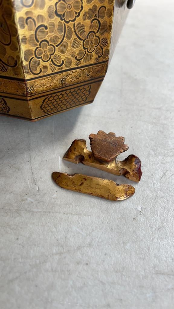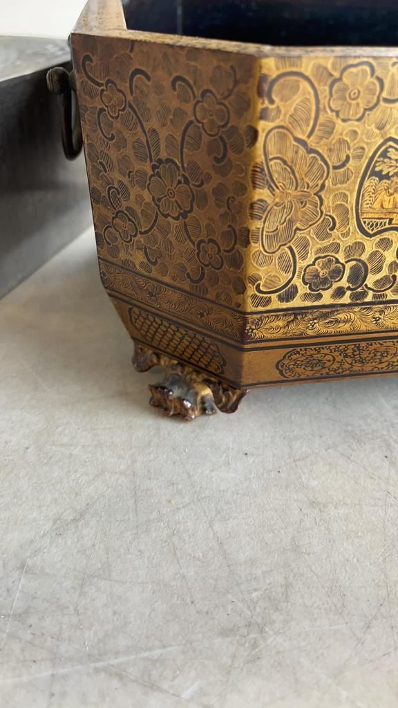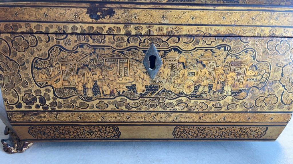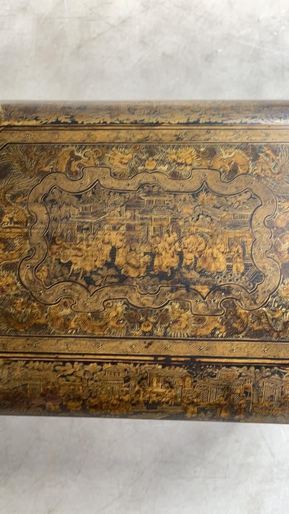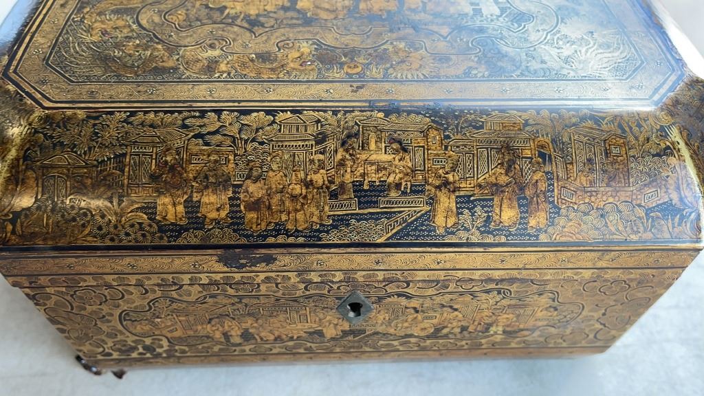 ANTIQUE CHINESE DAOGUANG PERIOD 19TH CENTURY GILT AND BLACK LAQUER TEA CHEST