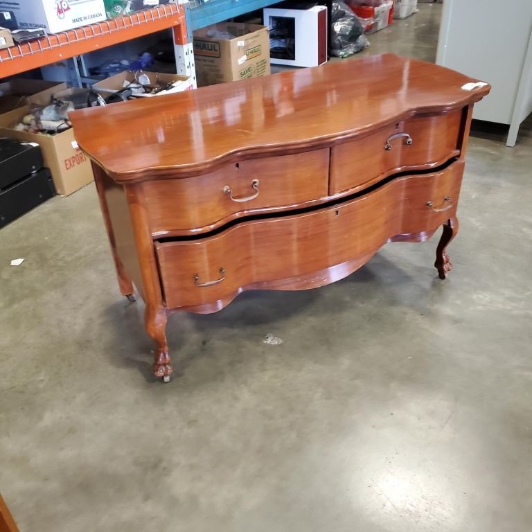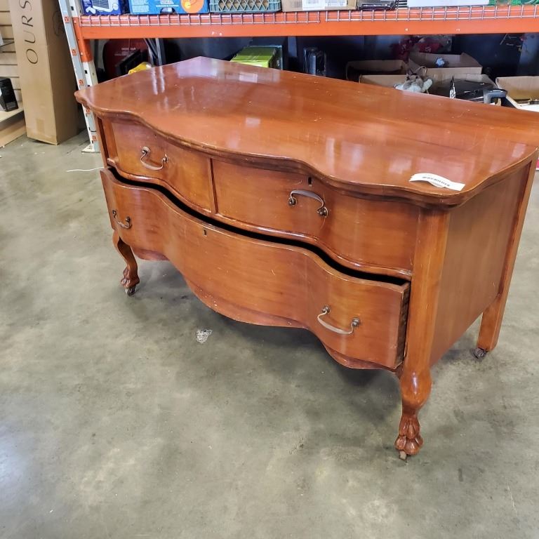 ANTIQUE CLAW FOOT SERPENTINE FRONT 2 DRAWER DRESSER