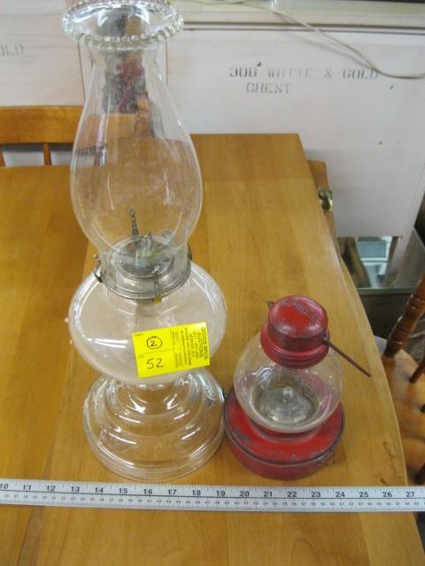 ANTIQUE COAL OIL LAMP & ANTIQUE ELECTRIC LANTERN