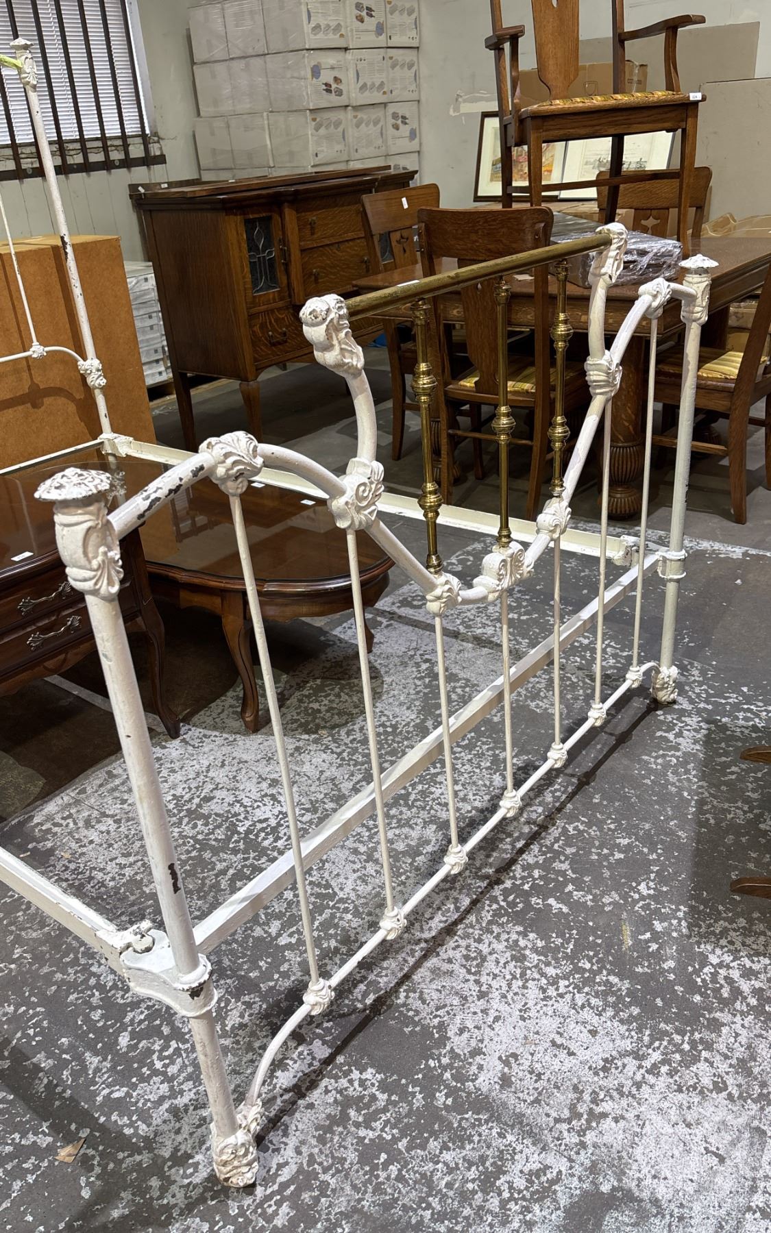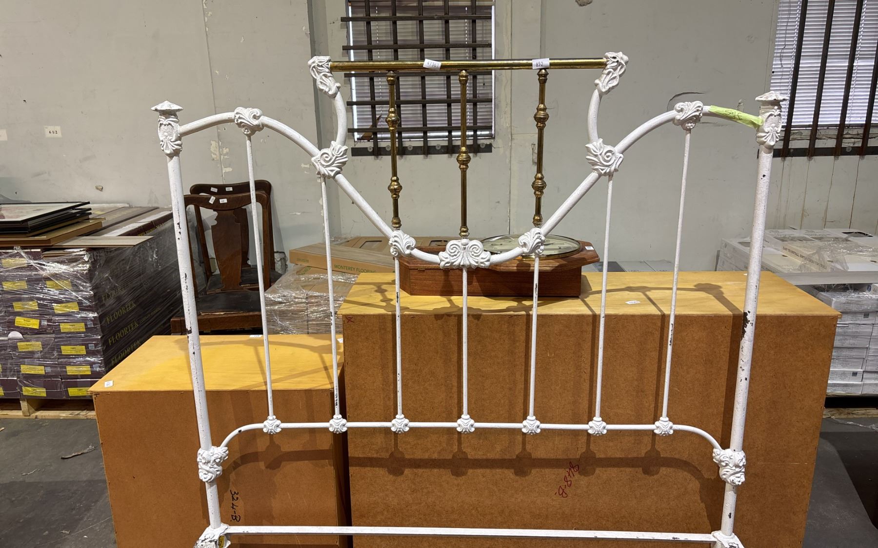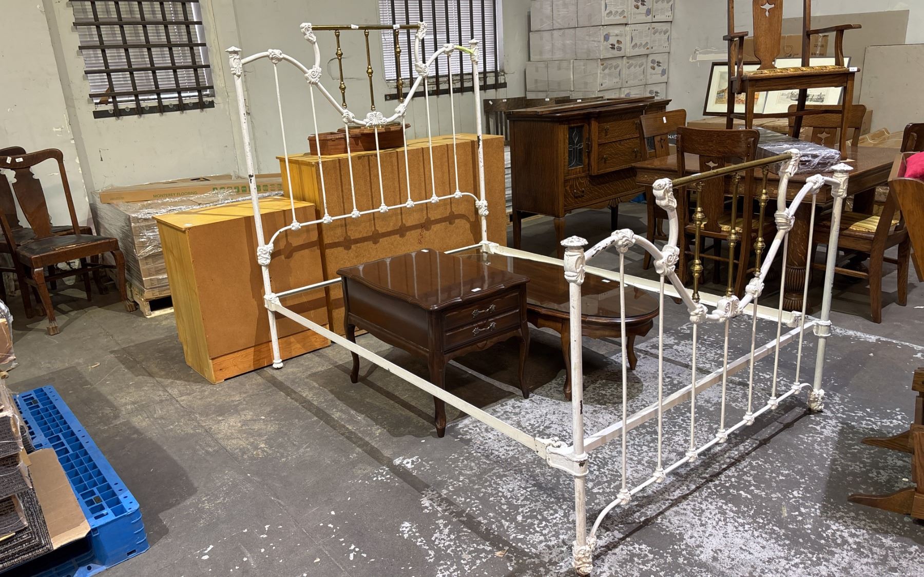 ANTIQUE DOUBLE SIZE BED FRAME WITH BRASS ACCENTS