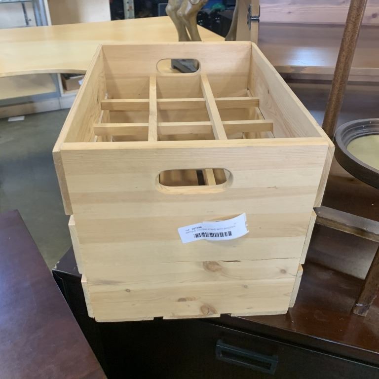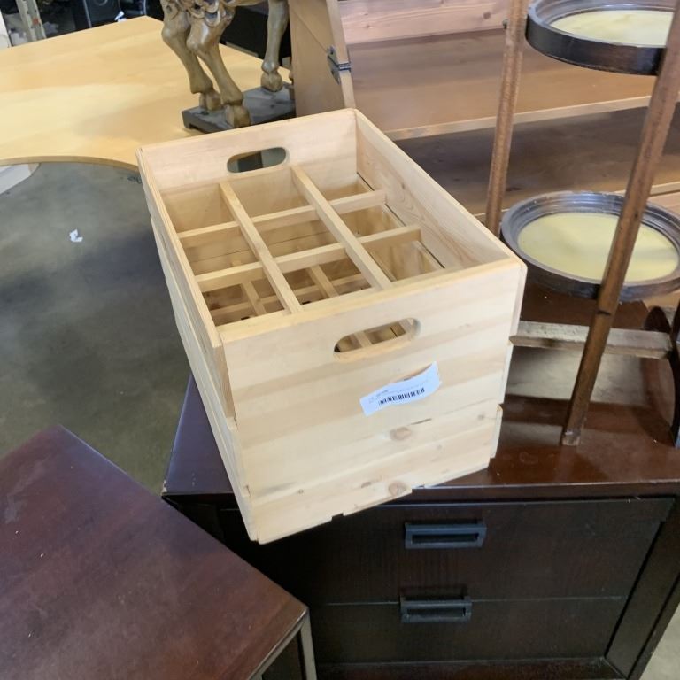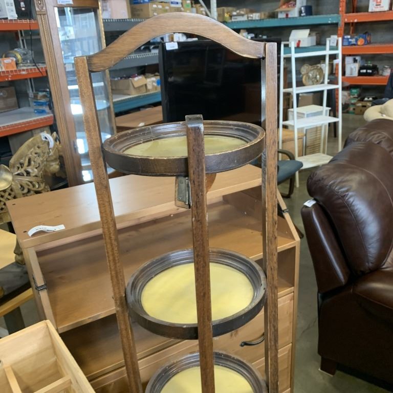 ANTIQUE FOLDING STAND WITH WOODEN CRATE