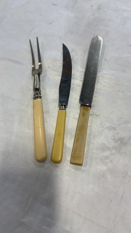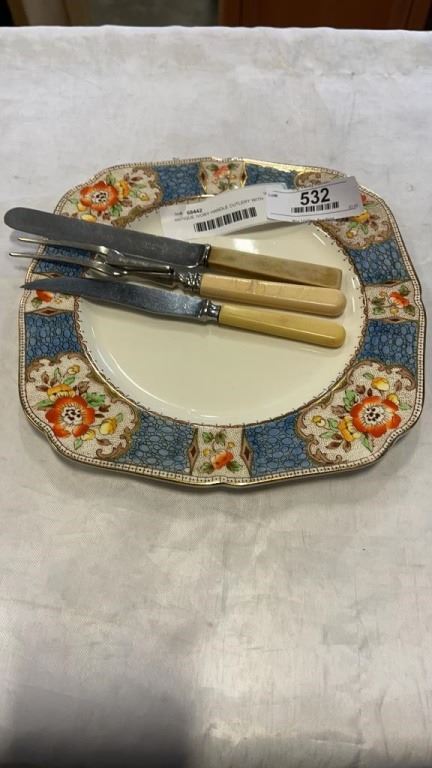 ANTIQUE IVORY HANDLE CUTLERY WITH ANTIQUE PLATE