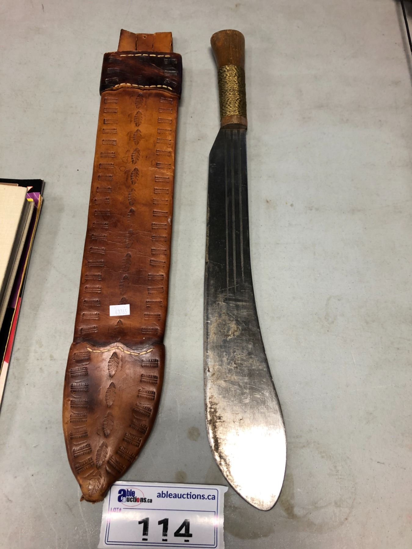 ANTIQUE MACHETE WITH LEATHER SHEATH