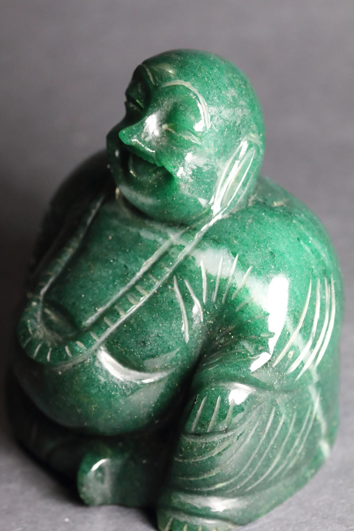 INCREDIBLE RARE MUSEUM SIZE 4040 CT CERTIFIED HAND CARVED JADE LAUGHING BUDDHA.UNHEATED 100 % NATURAL NO TREATMENTS.THIS BEAUTIFUL JADE BUDDHA MEASURES 103 x 89 x78 mm.JADE IS MOST VALUED FOR IT\'S METAPHYSICAL PROPERTIES.JADE IS REVERED IN ANCIENT CULTURES AS WELL AS TODAY.THE BUDDAH BRINGS HARMONY AND TRANQUILITY TO YOUR MIND AND BODY. BEAUTIFUL CARVING. THIS NATURAL JADE BUDDHA CARVING IS AMAZING.PICTURES CAN NOT BEGIN TO UNVEIL THE BEAUTY OF THIS FINE ART CARVING.WHAT A MAGNIFICANT ADDITION TO ANY ONE\'S COLLECTION. This is an old carving.