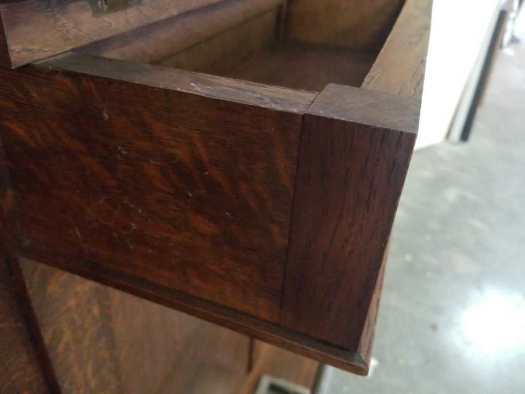 ANTIQUE OAK ARTS AND CRAFTS WALL MOUNT HALL STAND W/ ORIGINAL BEVELED MIRROR - GREAT CONDITION