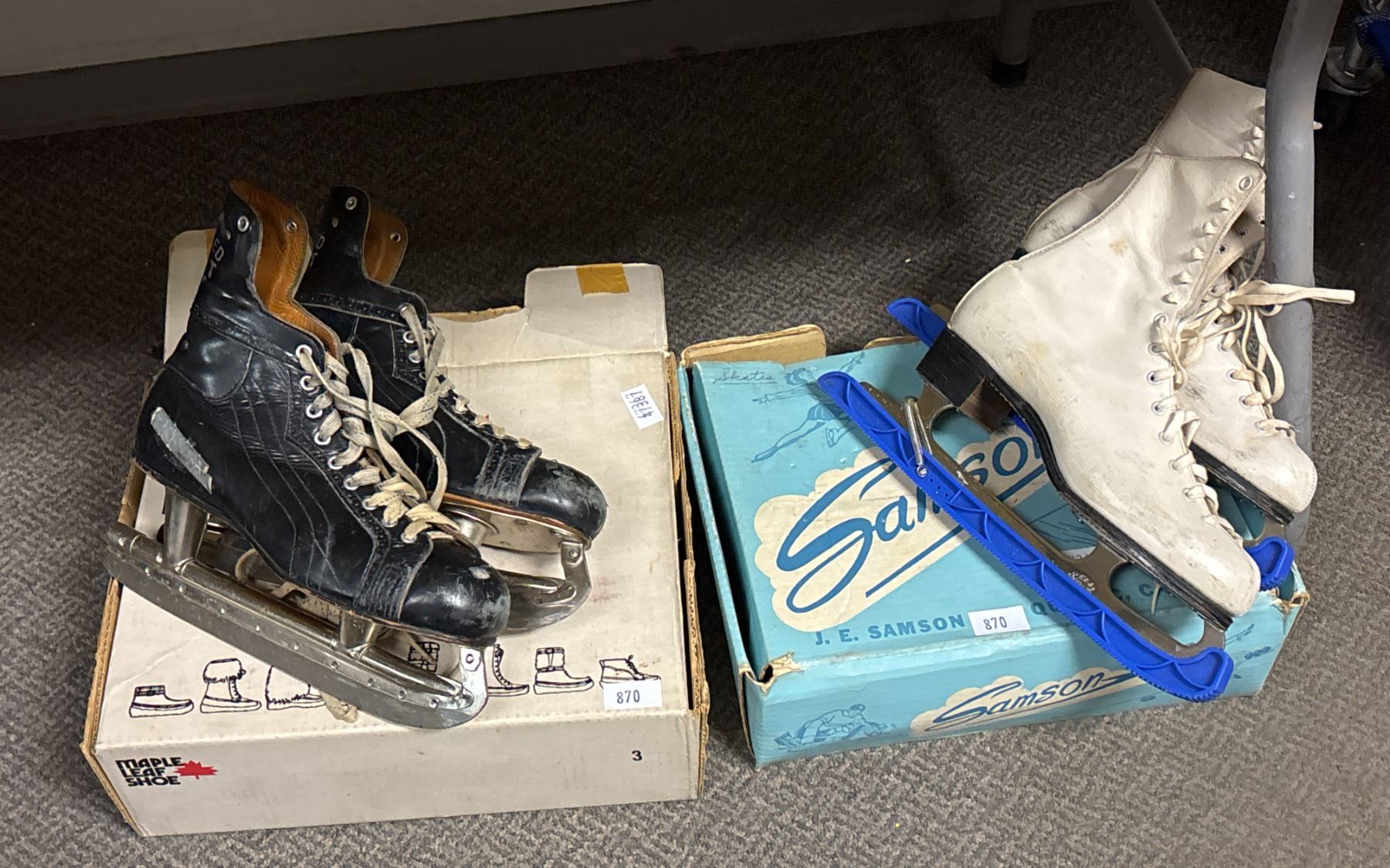 ANTIQUE PRO-STYLED DAOUST HOCKEY SKATES & SAMSON ANTIQUE FIGURE SKATES