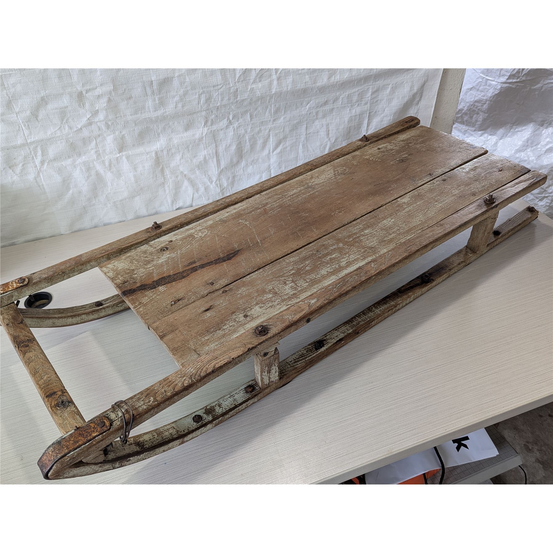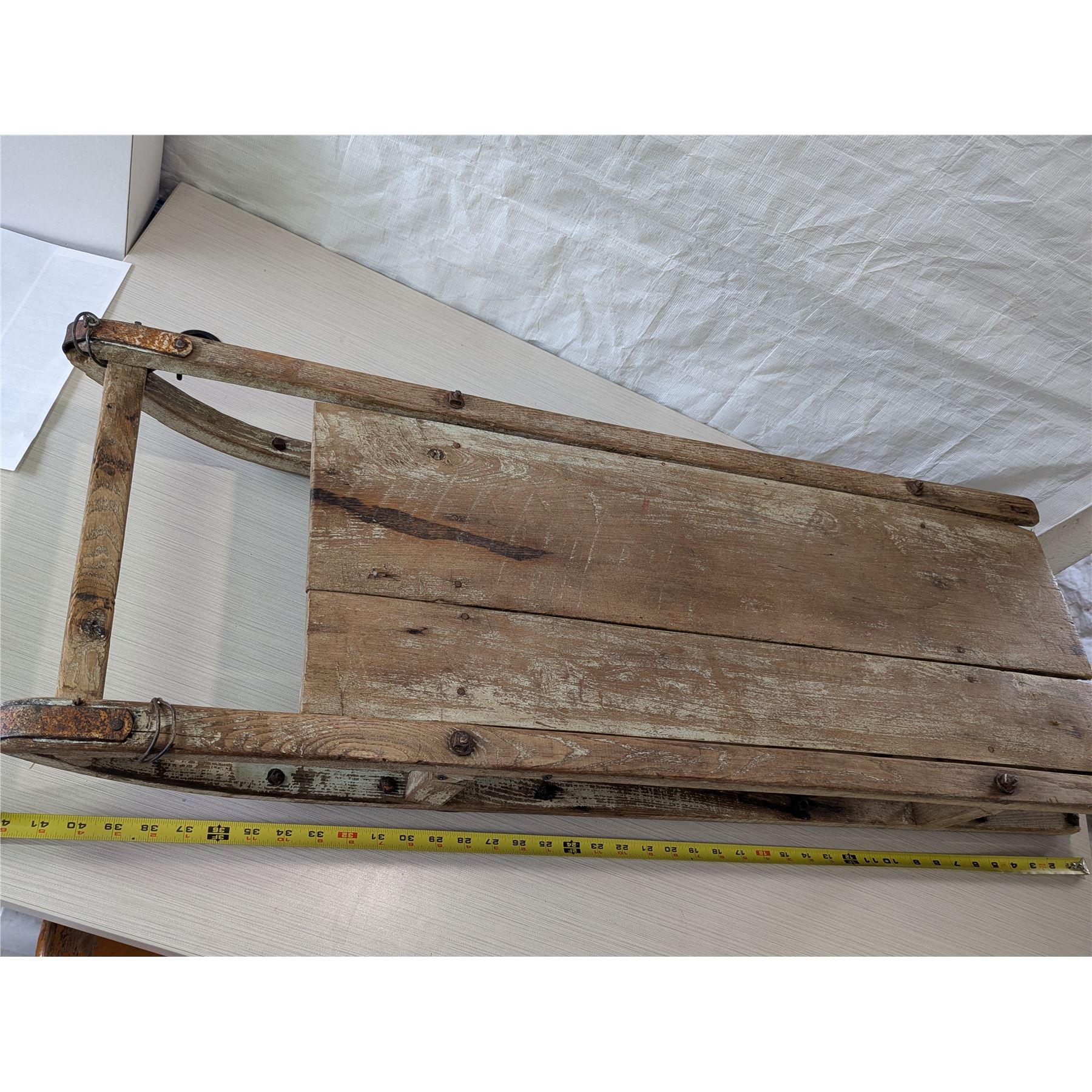ANTIQUE SNOW SLED 42"x14" Mm ade from oak wood with Steel runners. Get ready to slip slide away, or hook up to your Husky and mush away:)