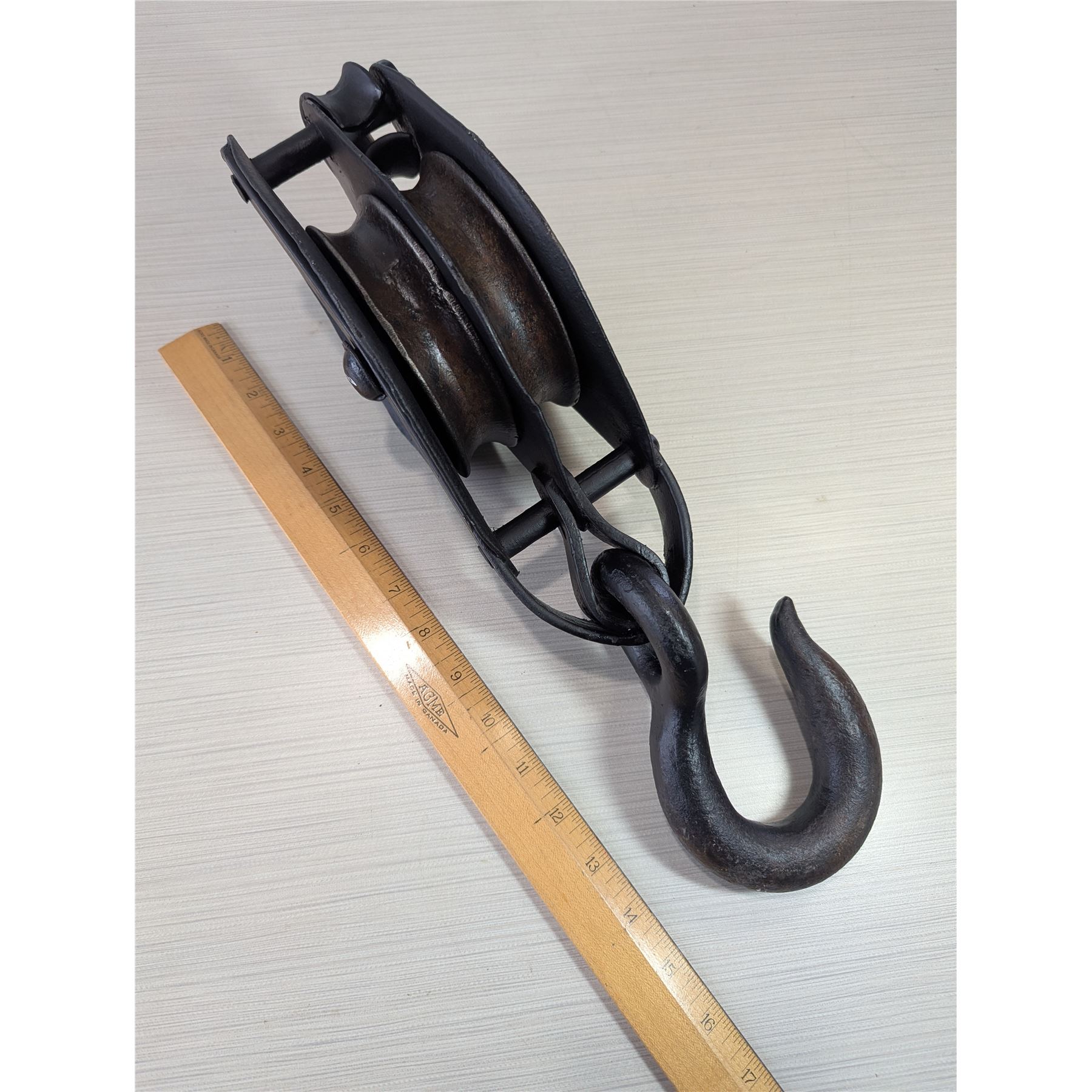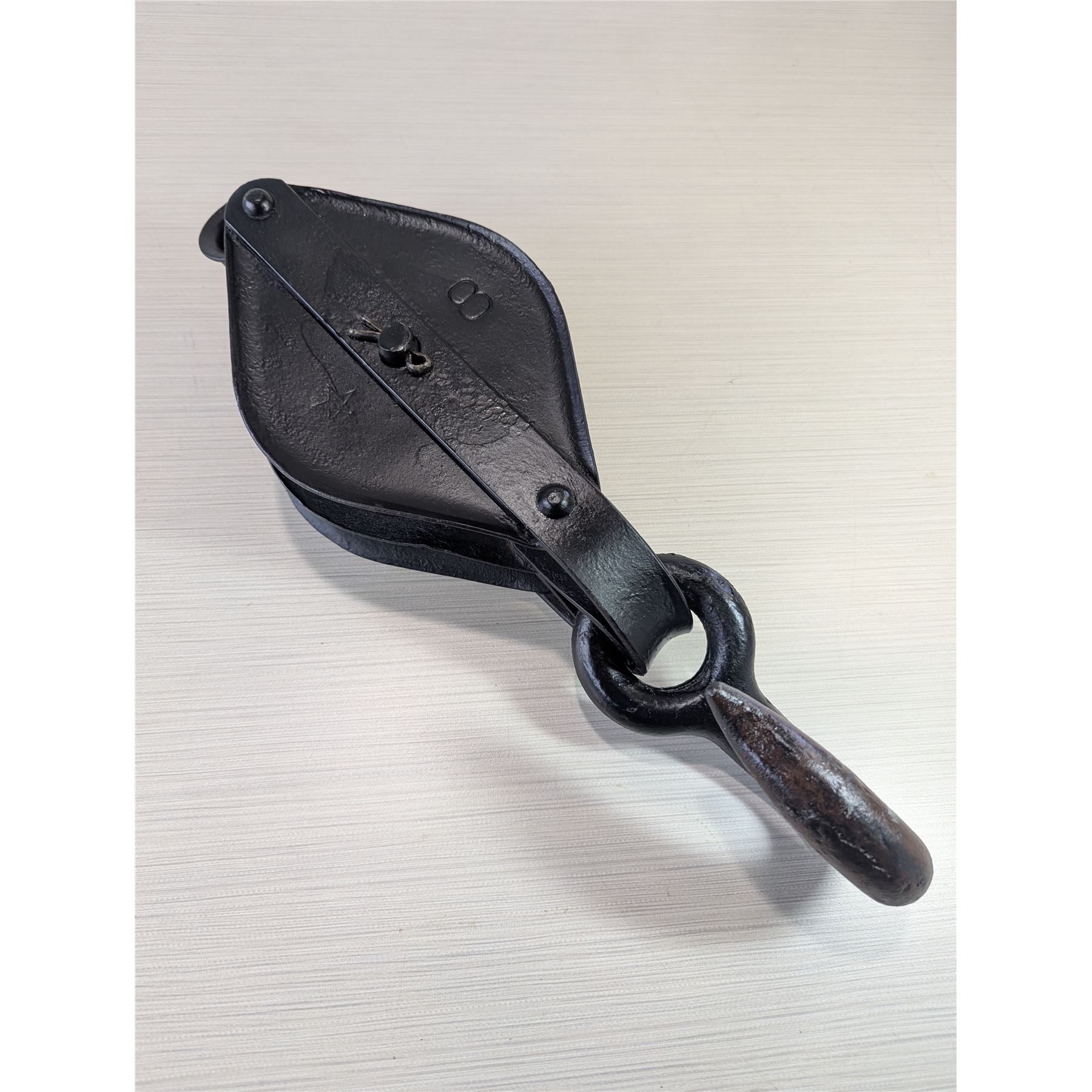 ANTIQUE Star Brand No. 8 Stamped Steel Pulley With Hook. Measures 16" and operates smoothly.