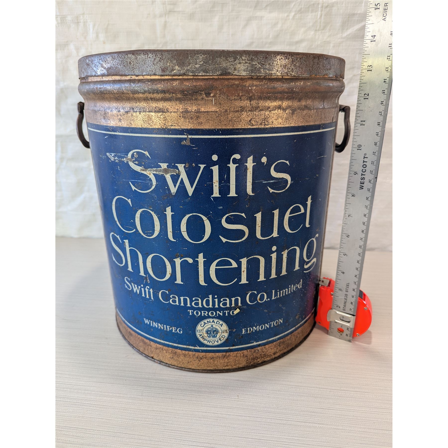 ANTIQUE Swift's Cotosuet Shortening Tin 14.5" x 12.25" Swift Canadian Co. Limited TORONTO, WINNIPEG, EDMONTO Marked PBT 1916