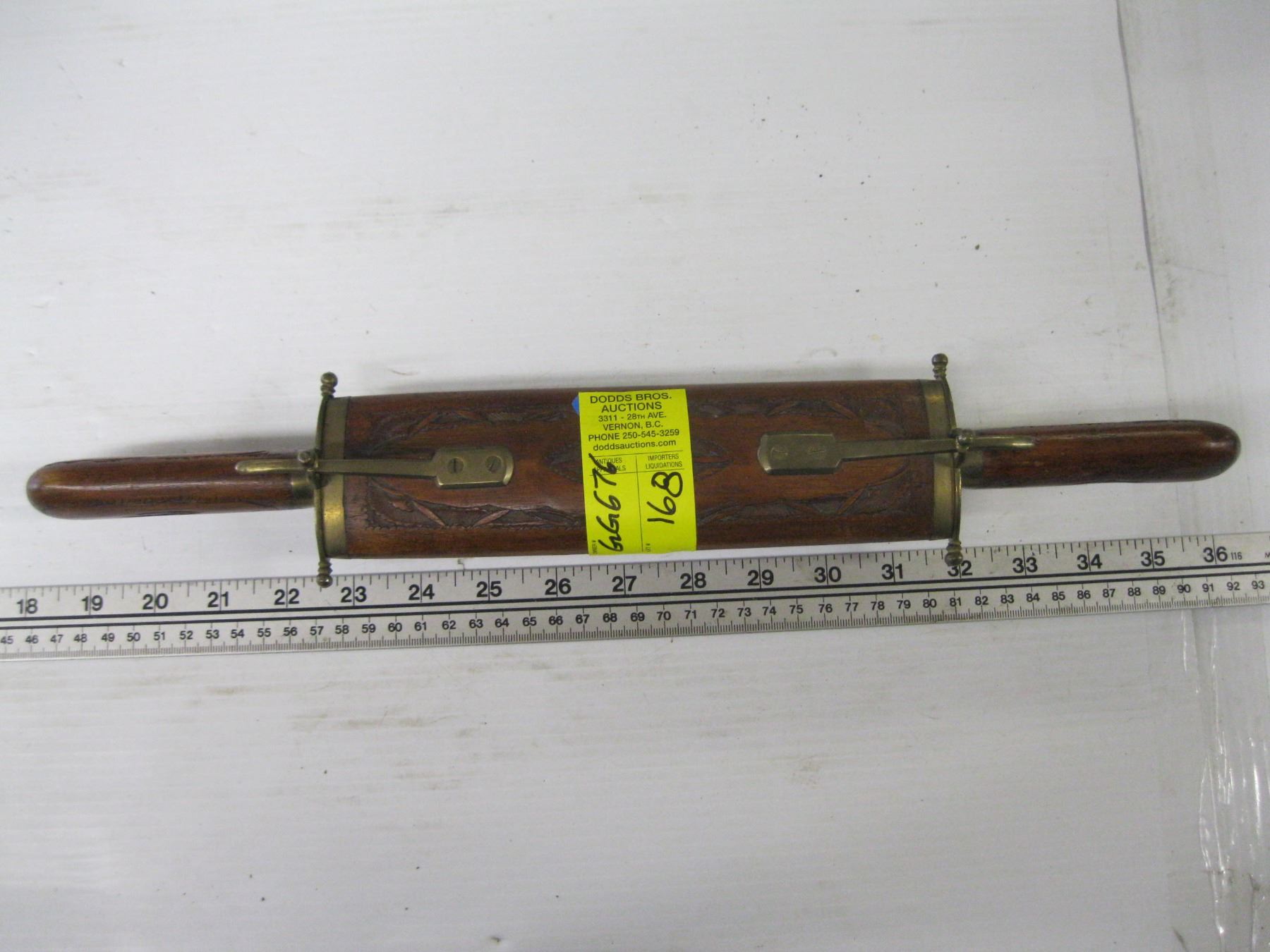 ANTIQUE WOOD HANDLED CARVING SET IN DECORATIVE HOLDER