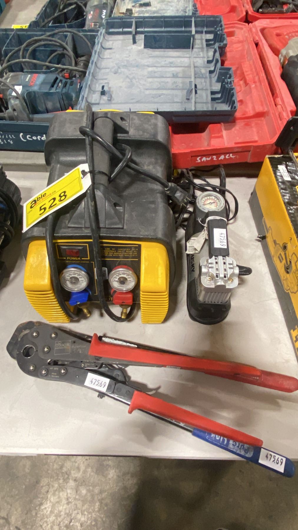 APPION G5 TWIN PORTABLE ELECTRIC CYLINDER / CONDENSER UNIT, SMALL PORTABLE ELECTRIC AIR COMPRESSOR, & 2 HEAVY DUTY CRIMPING TOOLS