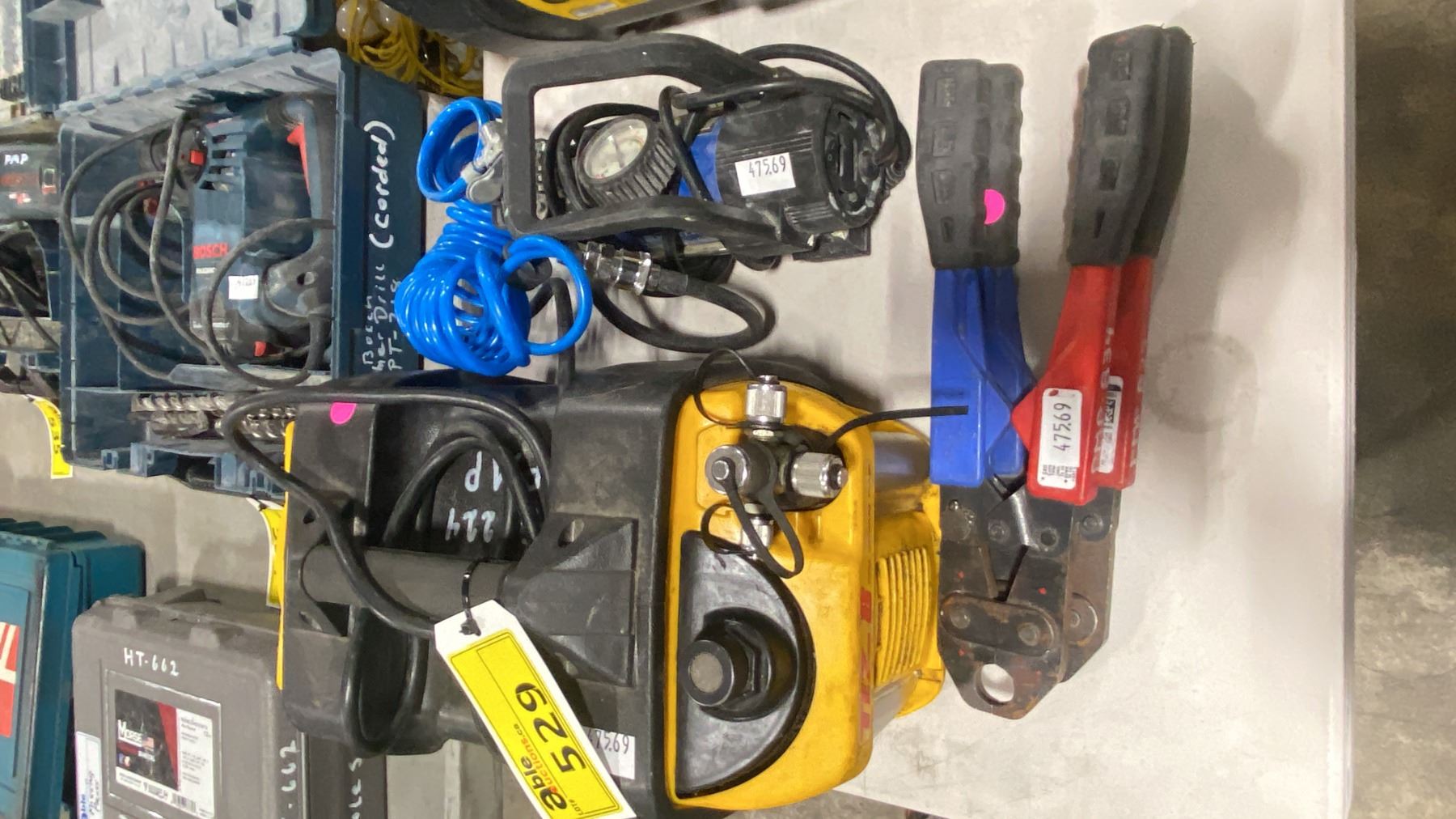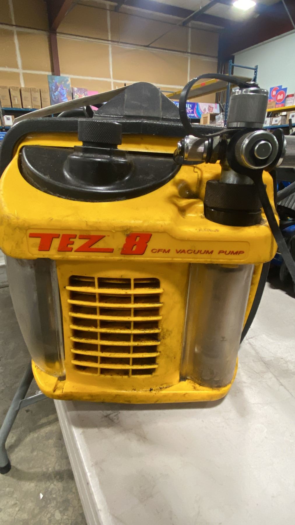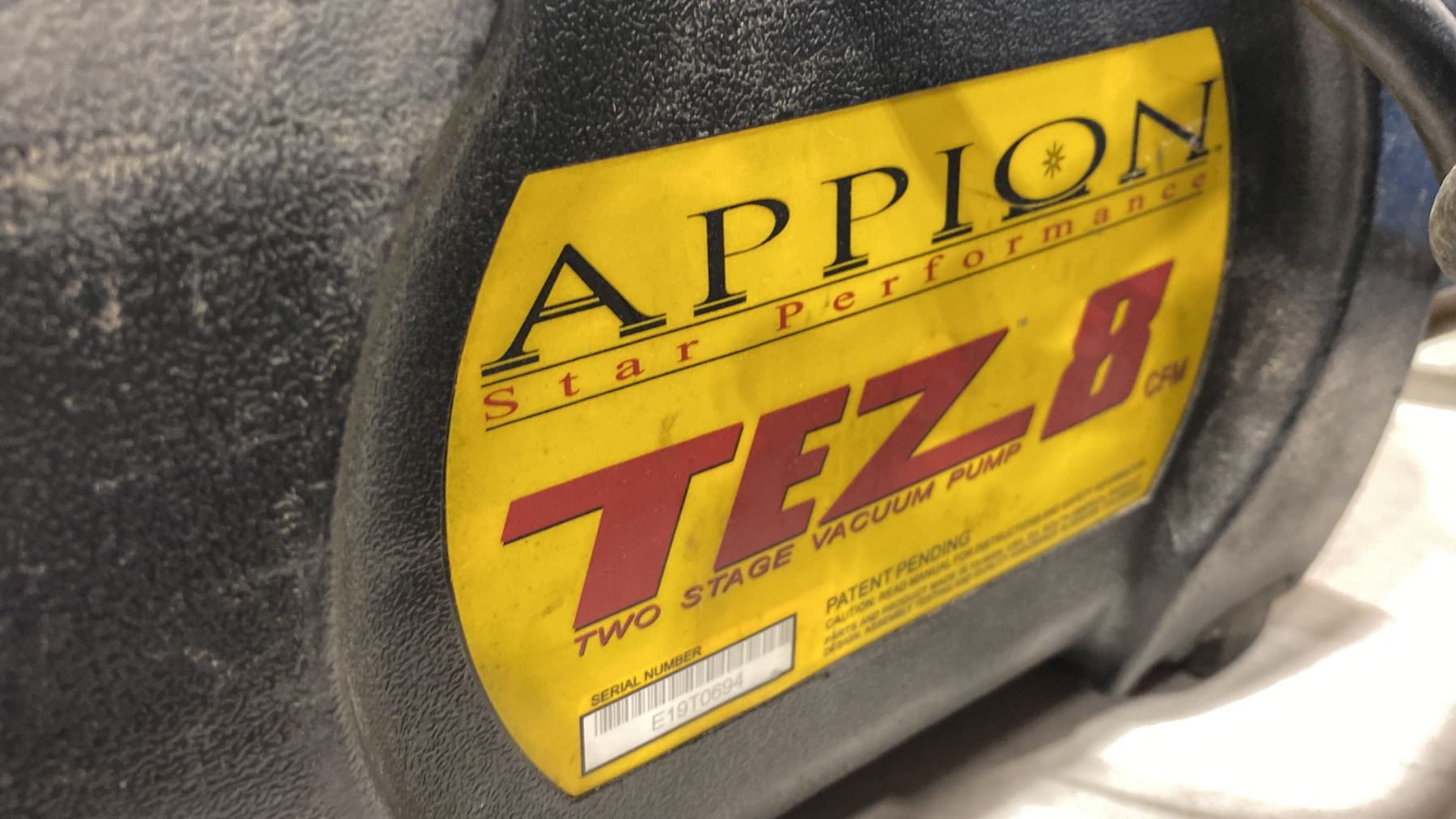 APPION TEZ 8 PORTABLE ELECTRIC VACUUM PUMP UNIT, SMALL PORTABLE ELECTRIC AIR COMPRESSOR, & 2 HEAVY DUTY CRIMPING TOOLS