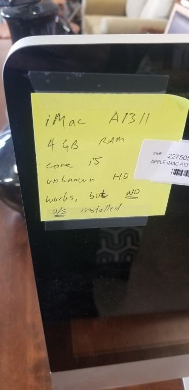 APPLE IMAC A1311, 4GB RAM, CORE I5, UNKNOWN HDD SIZE, NO OPERATING SYSTEM INSTALLED