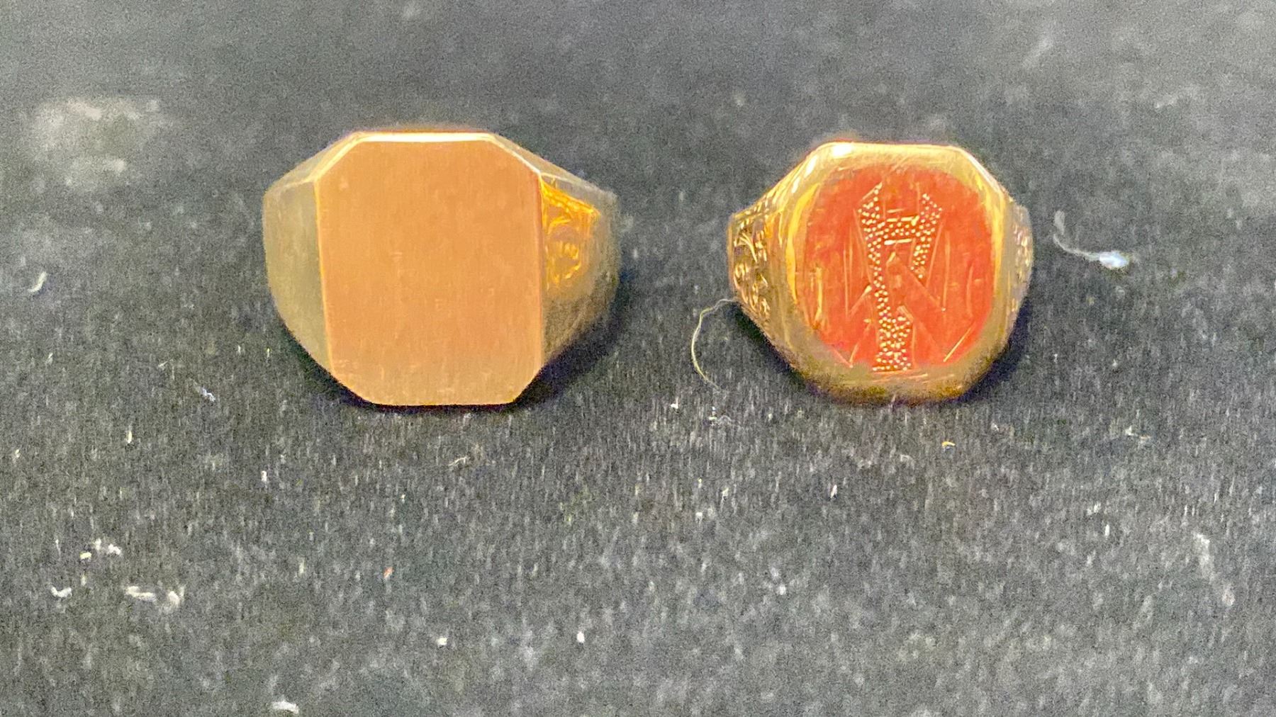APPROX 18K LADIES SIGNET RING & APPROX 10K MENS PINKY SIGNET RING (11.8G)