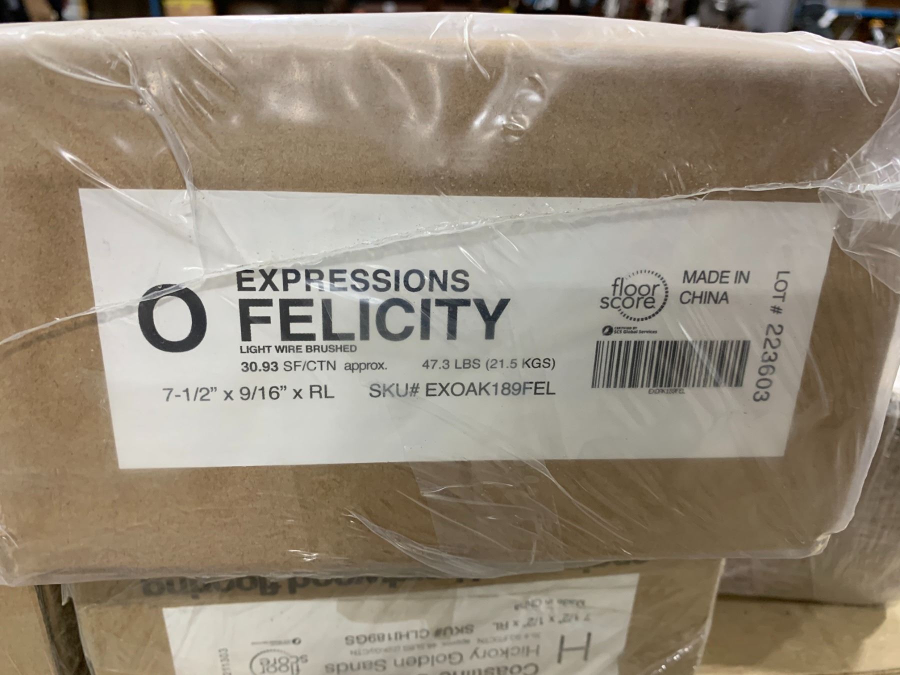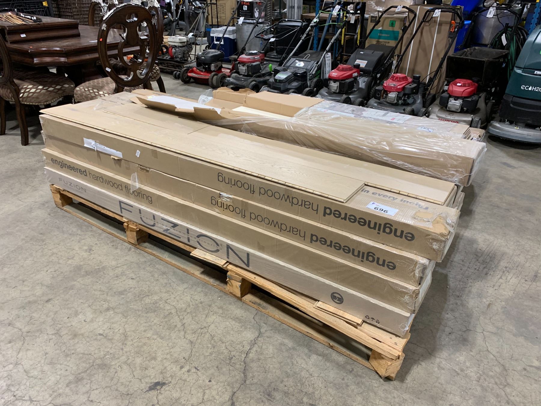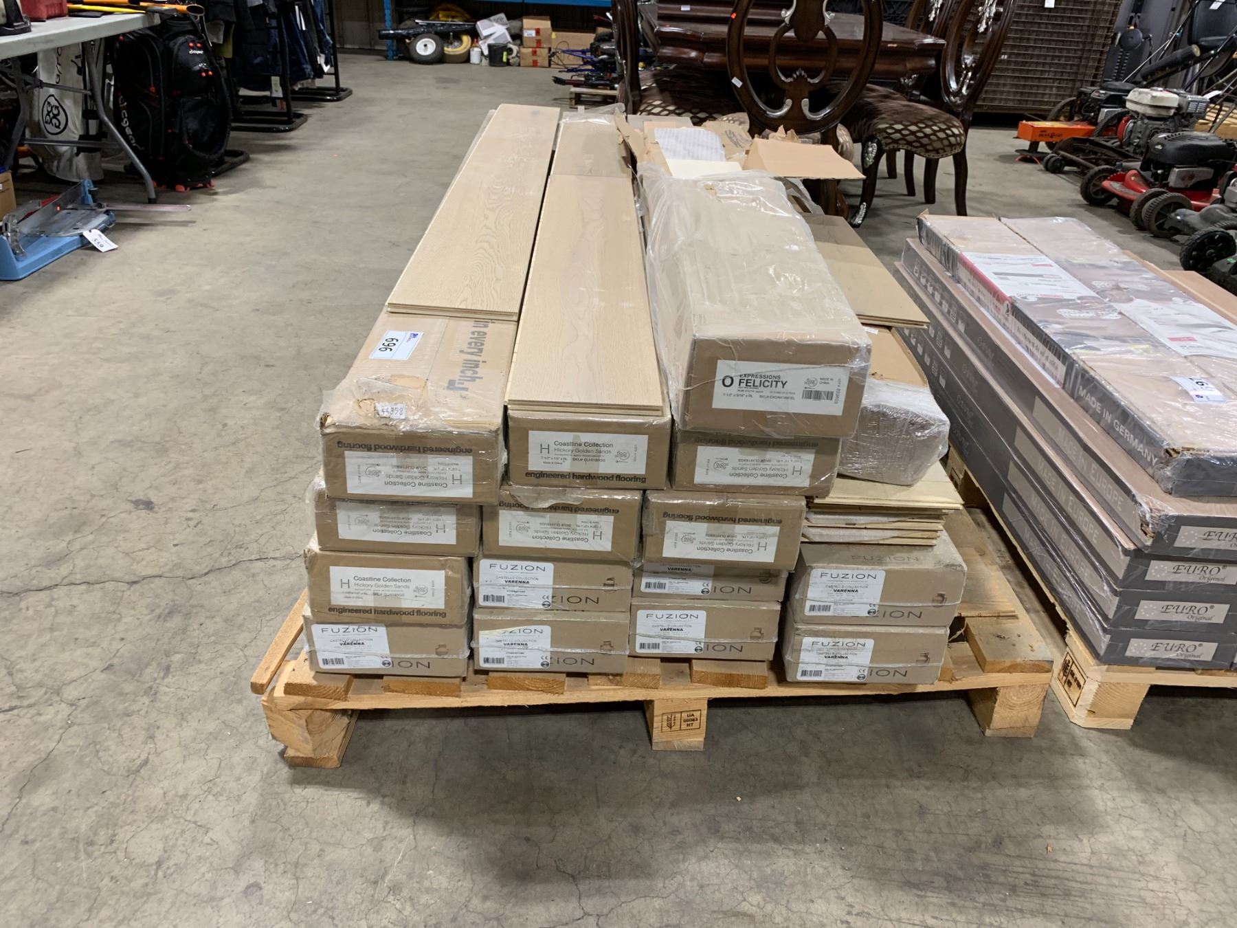 APPROX. 7 BOXES OF GOLDEN SANDS HICKORY ( 250.6 SQ' ) & APPROX. 7 VARENNA ( 239.61 SQ' ) FUZION ON PALLET