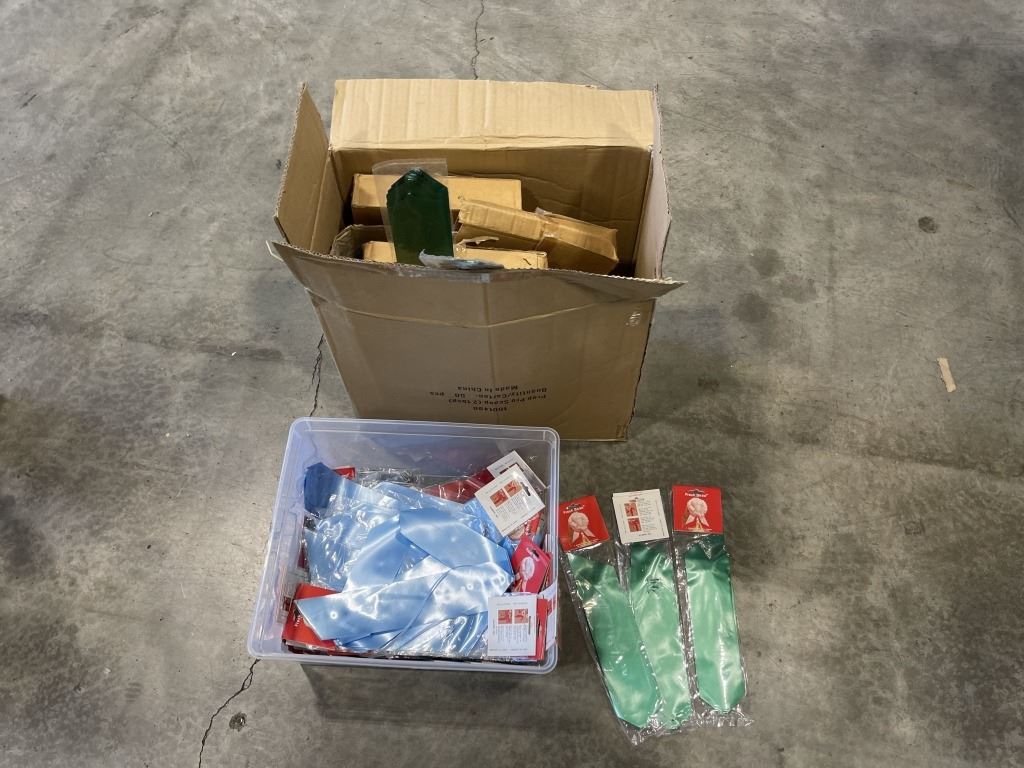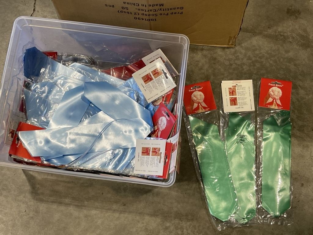 APPROXIMATELY 250 LARGE BOWS LIGHT BLUE, GOLD AND GREEN