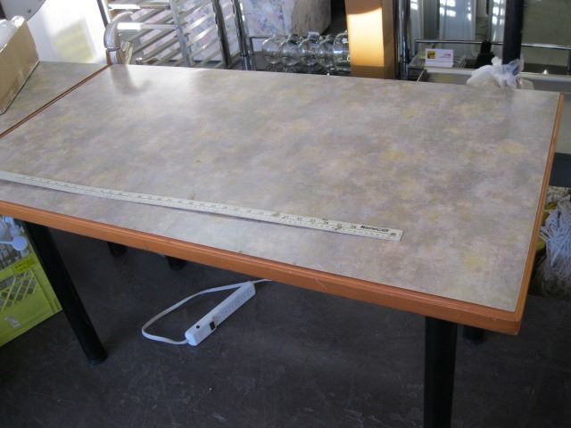 ARBORITE TOPPED TABLE, FOUR LEGS. APPROX 53" X 29 1/2"