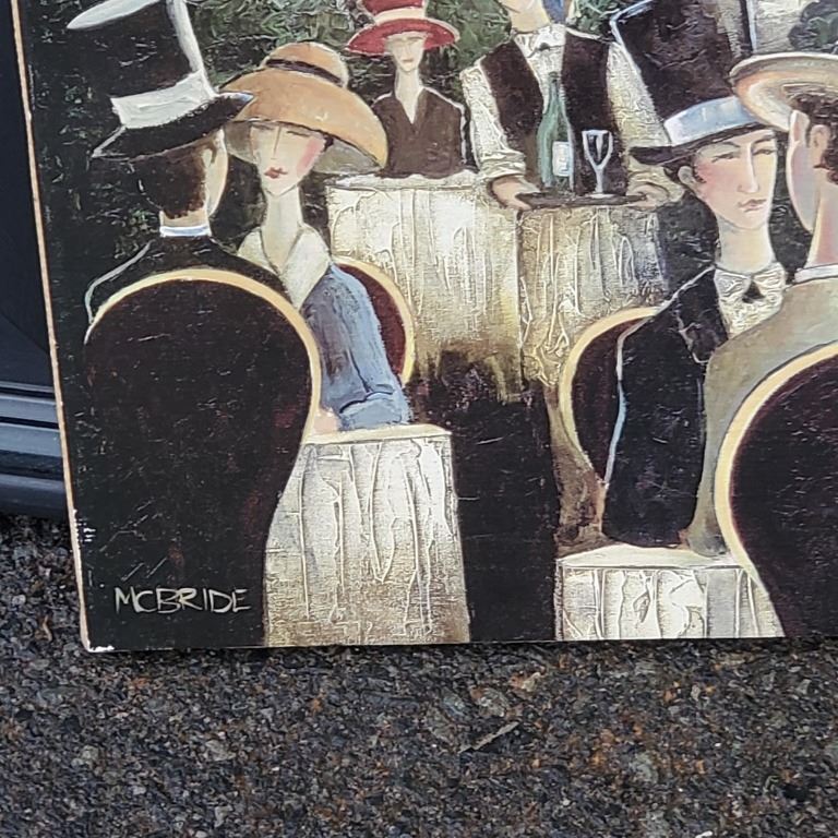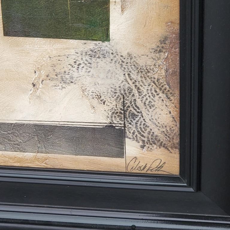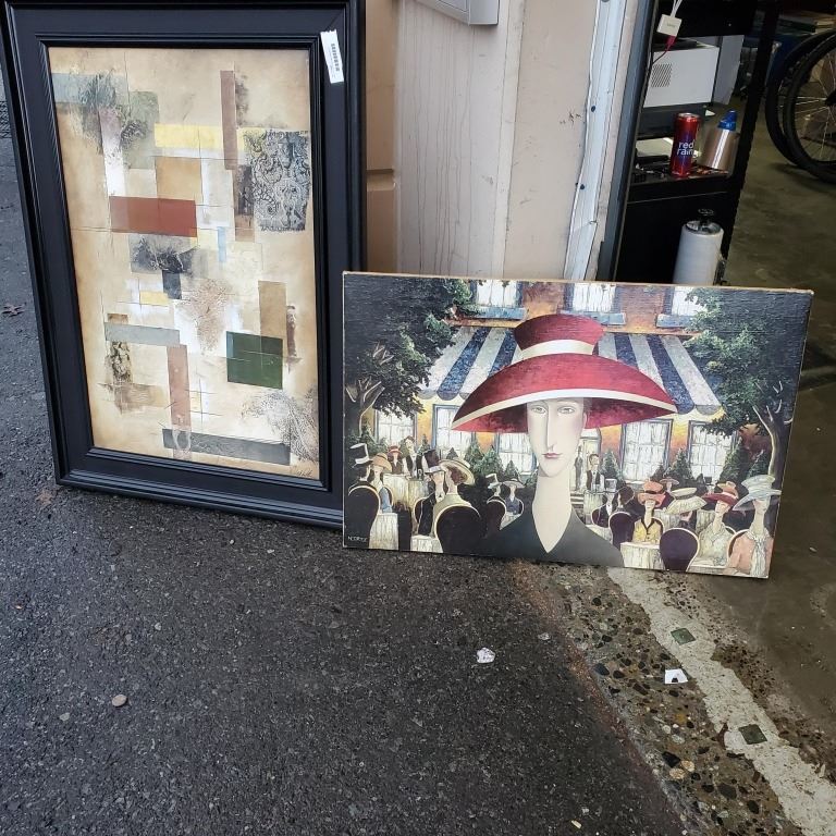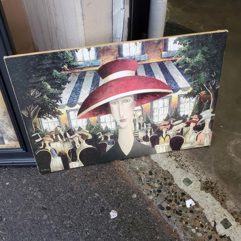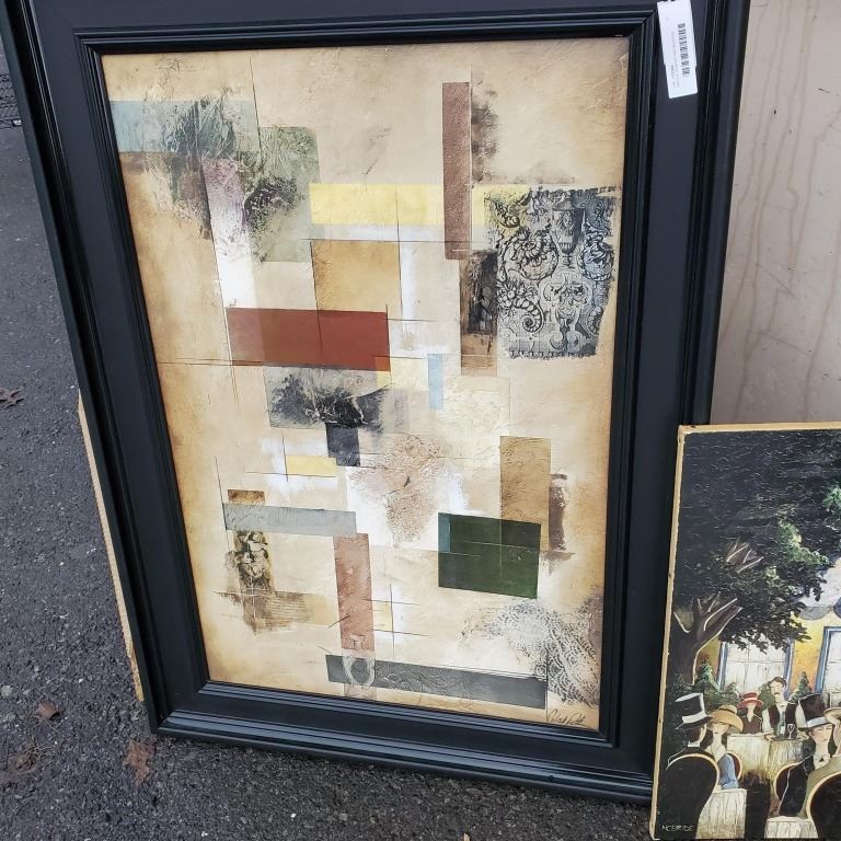 ARCYLIC PAINTING AND MOUNTED PORTRAIT